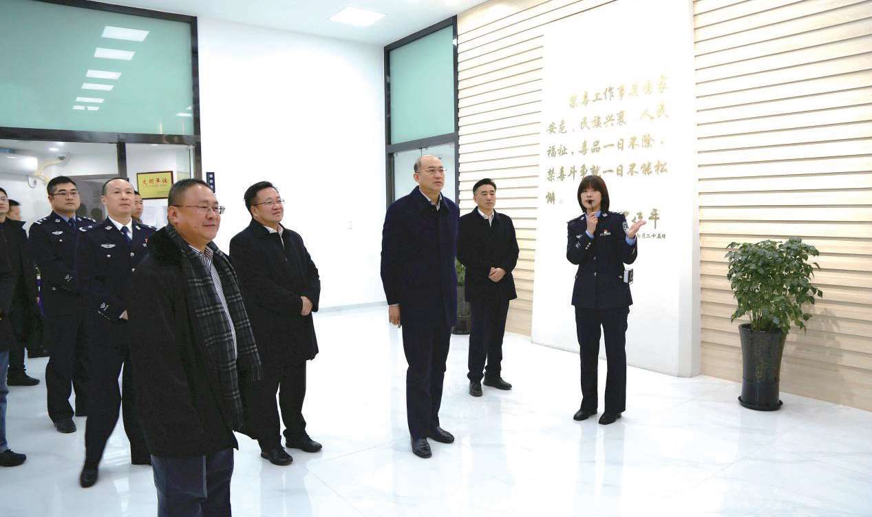 2020年12月17日,国家禁毒办常务副主任、公安部禁毒局局长梁云(右三)在分局检查指导“首轮”全国禁毒示范城市创建工作