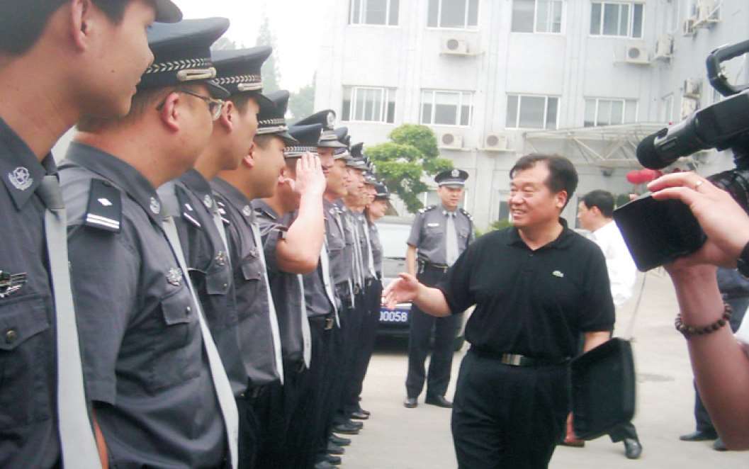 2005年5月4日,市委书记王建满(右一)看望慰问分局治安大队民警