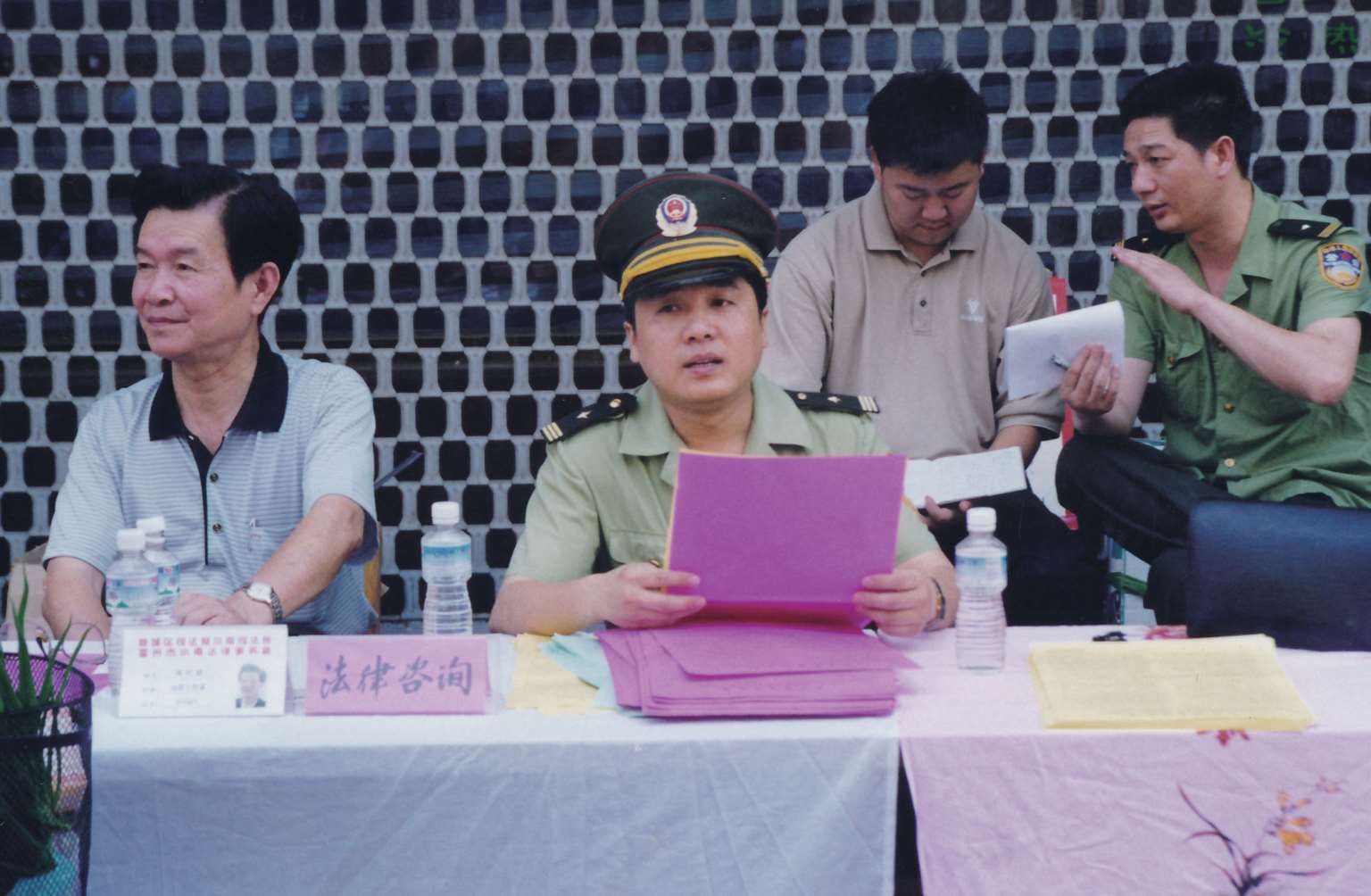 2000年冬,分局党委委员、副局长林定耀(中)参与“三项教育”刑大组织的群众评议公安活动