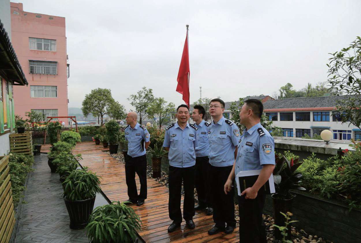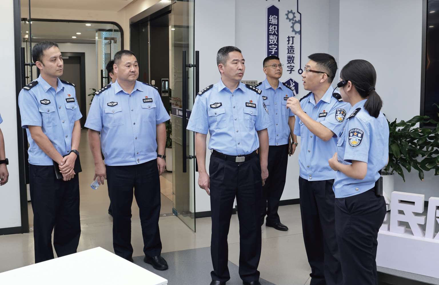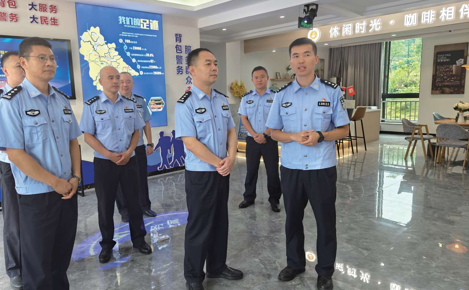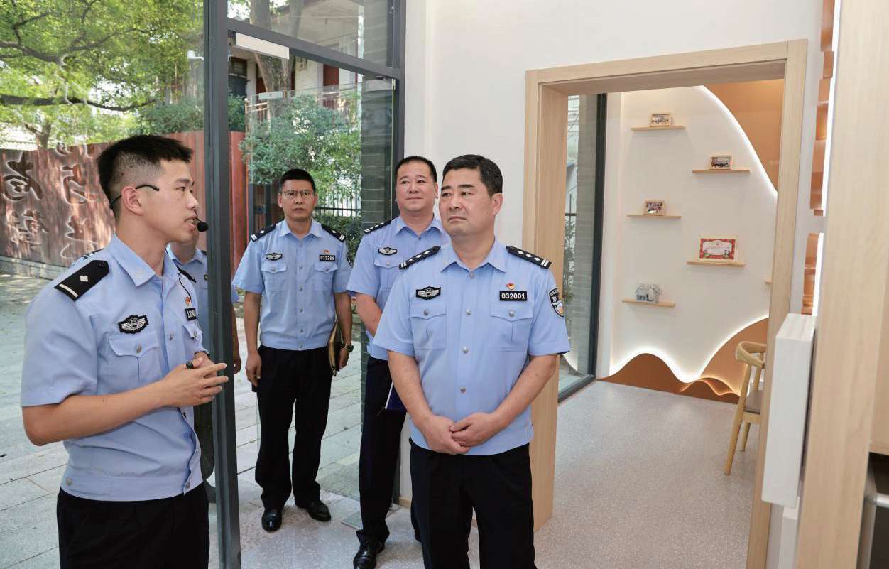 2023年8月14日,副区长、分局局长倪建海(右三)调研临江警务室创建情况