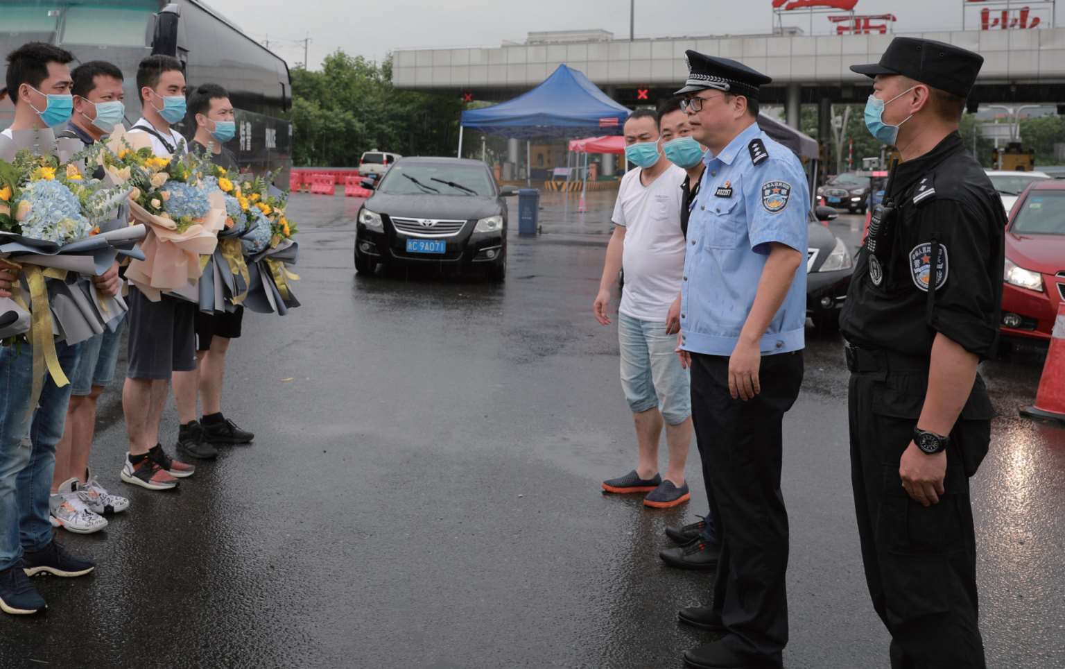 2020年6月5日,分局党委委员、副局长徐向东(右二)赴温州西高速路口迎接专案组凯旋