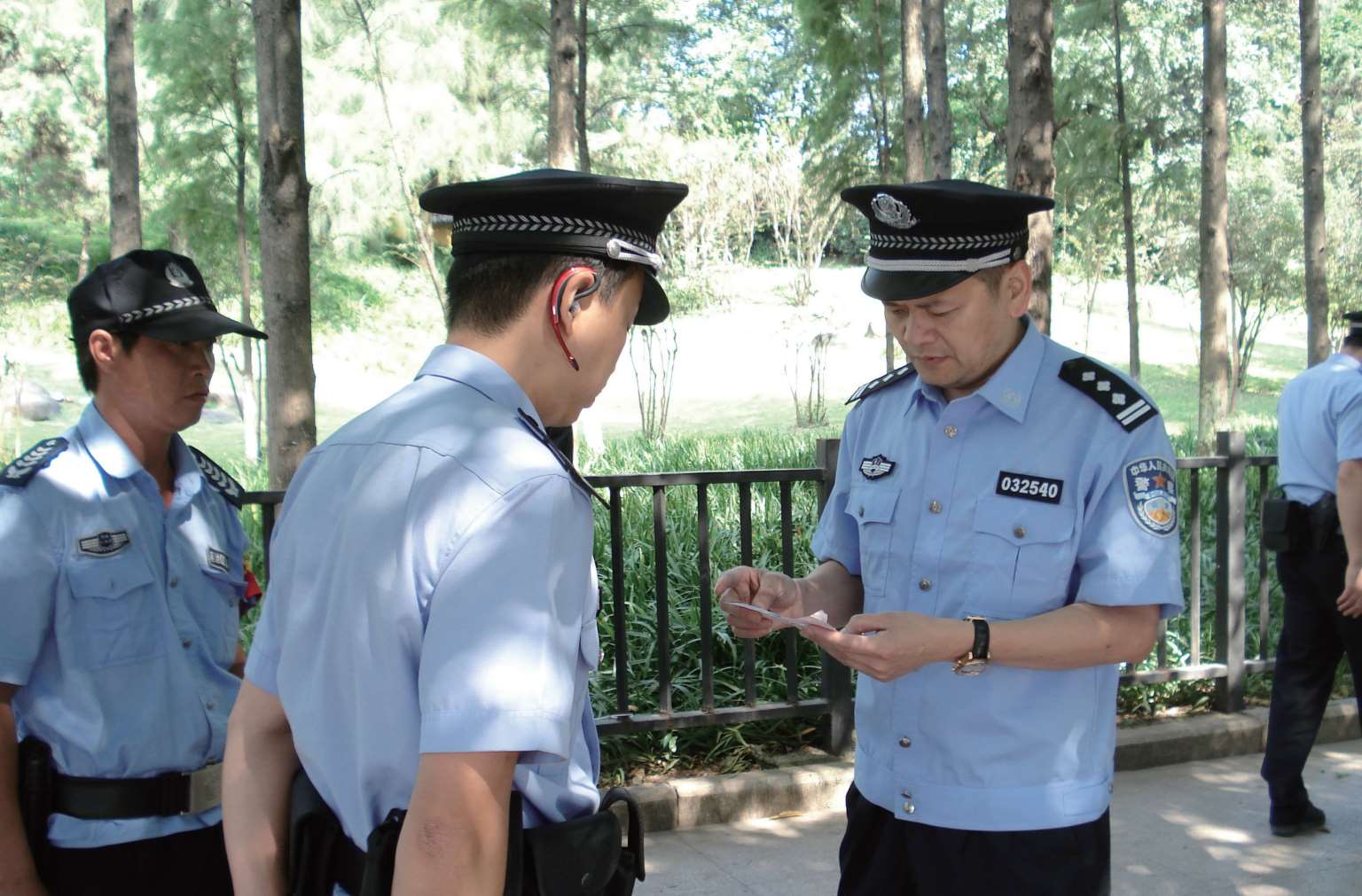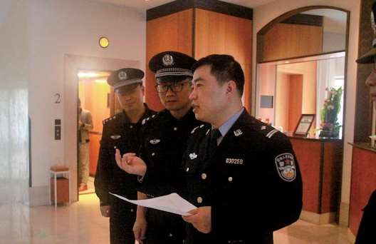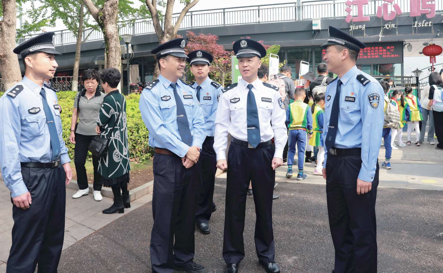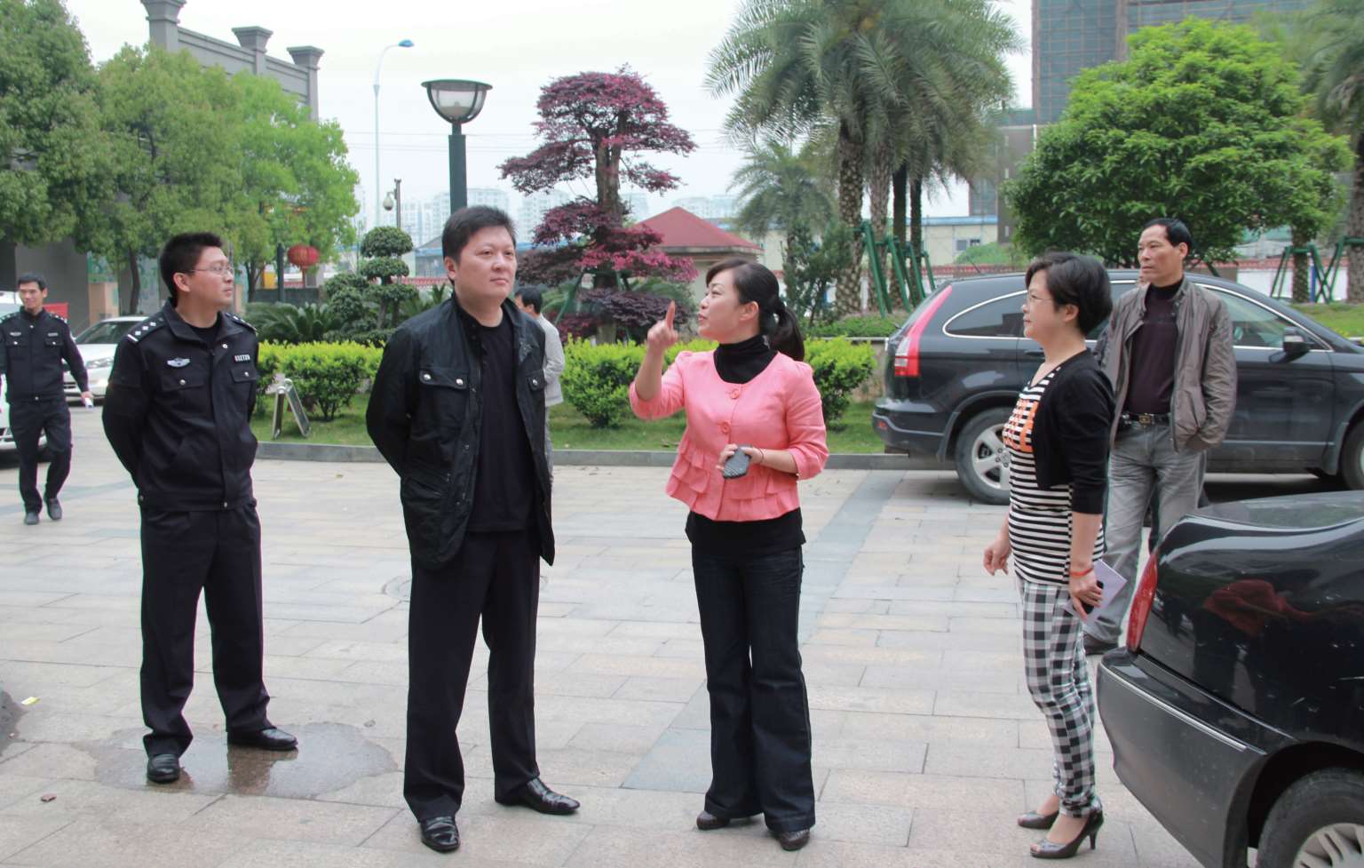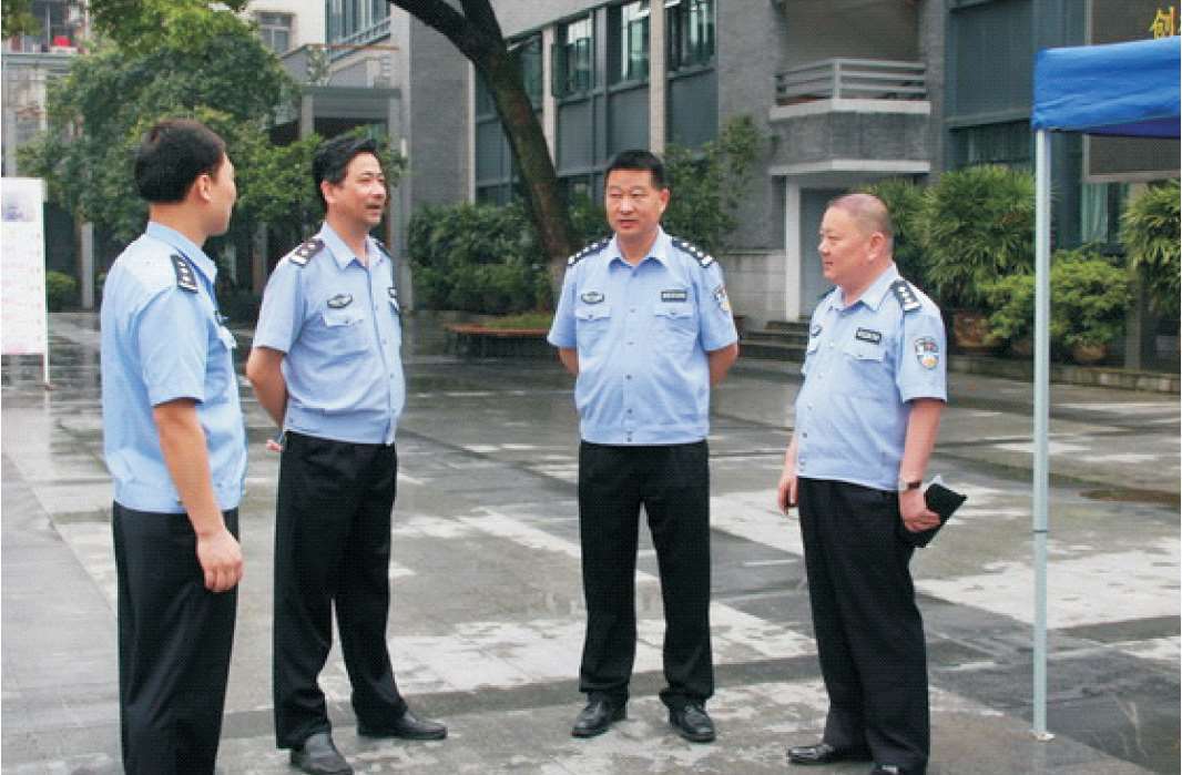 2016年4月6日,市公安局党委委员、区委常委、分局局长金 国平(左二)调研指导安保工作