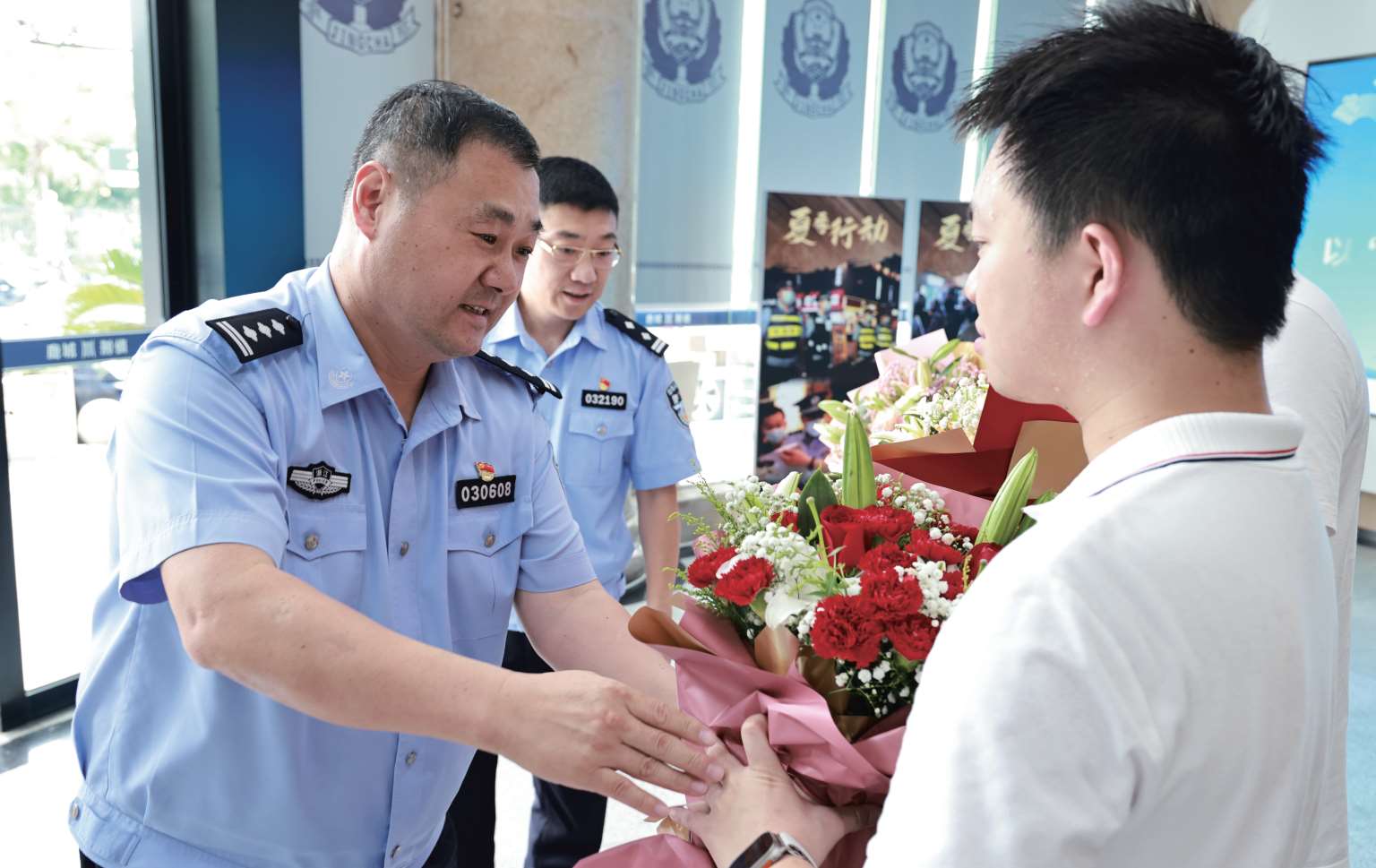 2023年8月11日,分局党委委员、副局长蔡国华(左一)赴刑侦大队慰问专案同志
