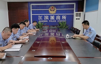 2020年7月16日,分局党委委员、特巡警大队大队长郑权(右)在江滨派出所督导工作