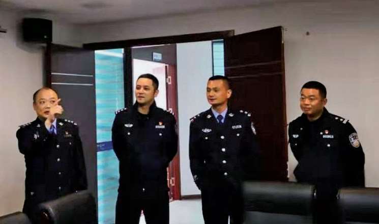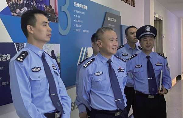 2023年9月29日,市公安局高速交警支队政委、区政府党组成员、分局局长潘青来(左三)赴分局刑侦大队调研指导工作