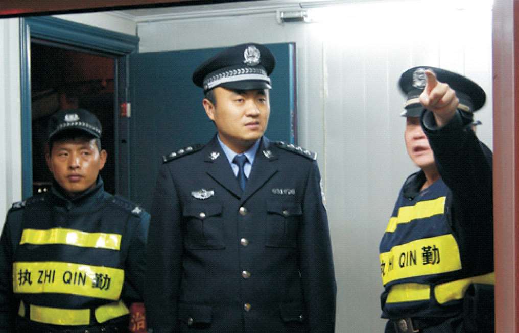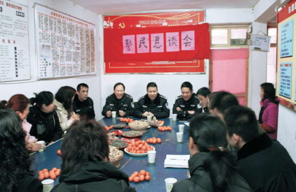 2009年1月15日,分局党委委员、副局长周剑波(中)参加洪殿派出所第一警区警民恳谈会