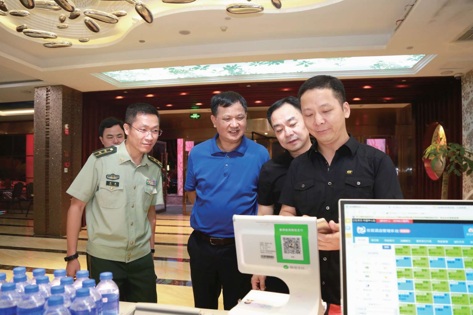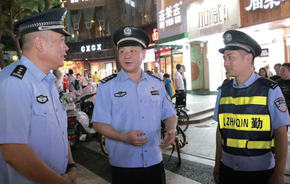 2022年7月20日,副区长、分局局长潘旭光(右一)赴五马派出所“千年街”联 勤警务站调研指导工作