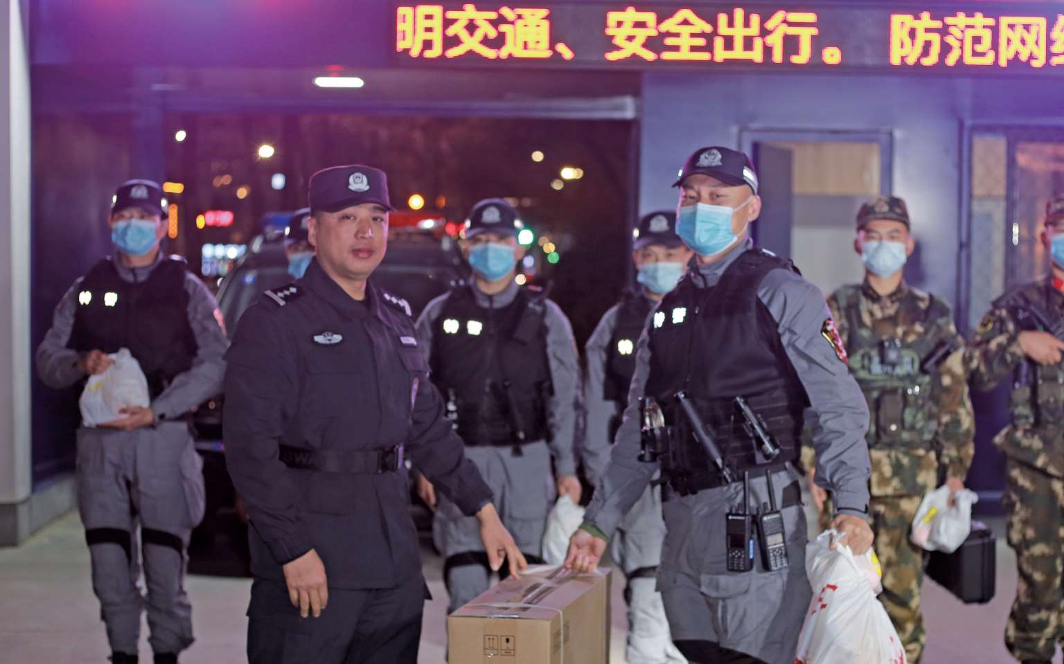 2021年1月1日,分局党委委员、特巡警大队大队长宋轩(前排左一)督导快反驻点巡控工作