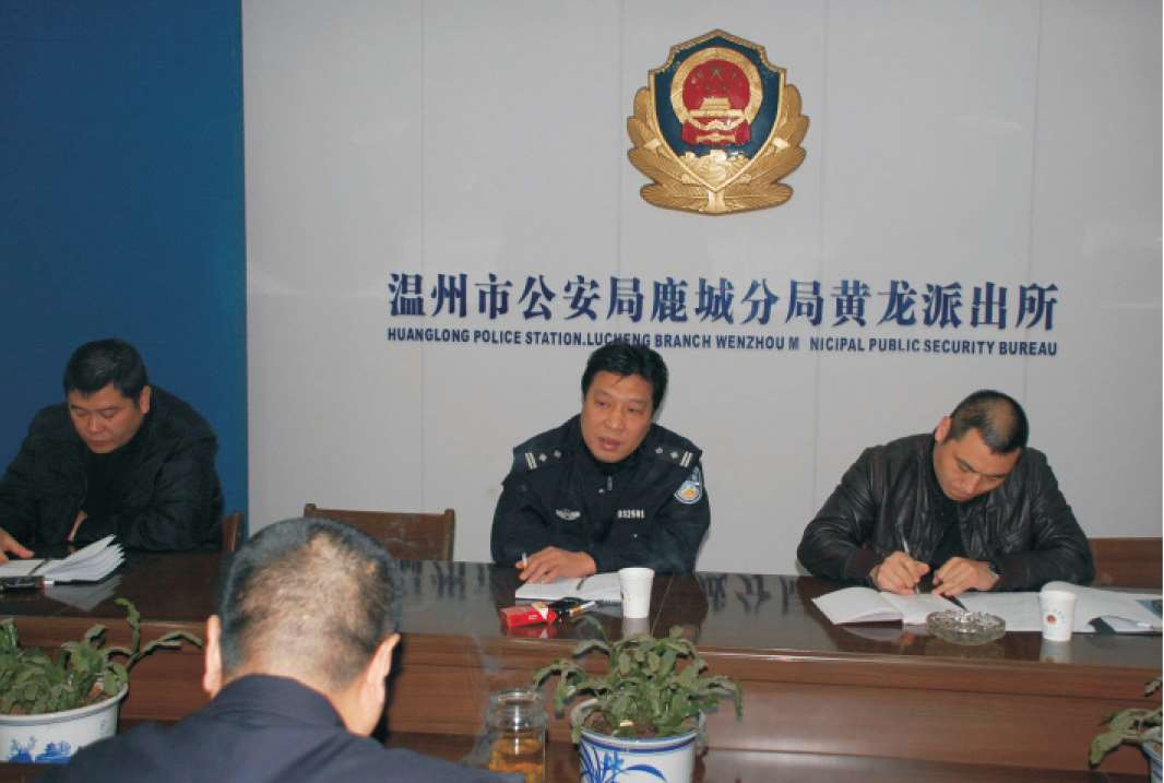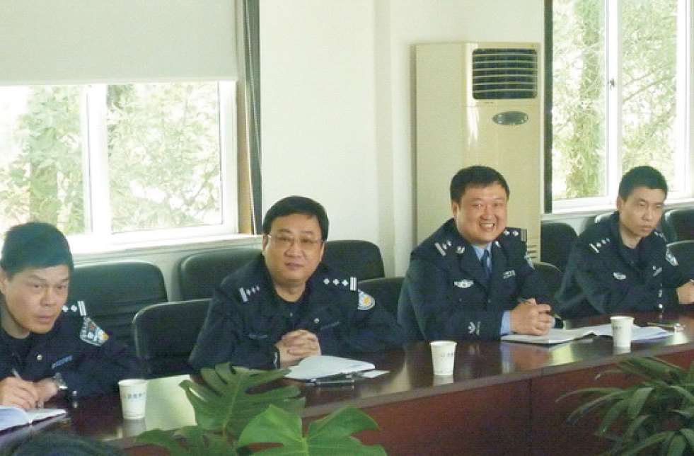 2009年2月18日,分局副政委、打黑办主任叶程光(右二)调研指导黄龙派出所打黑除恶工作