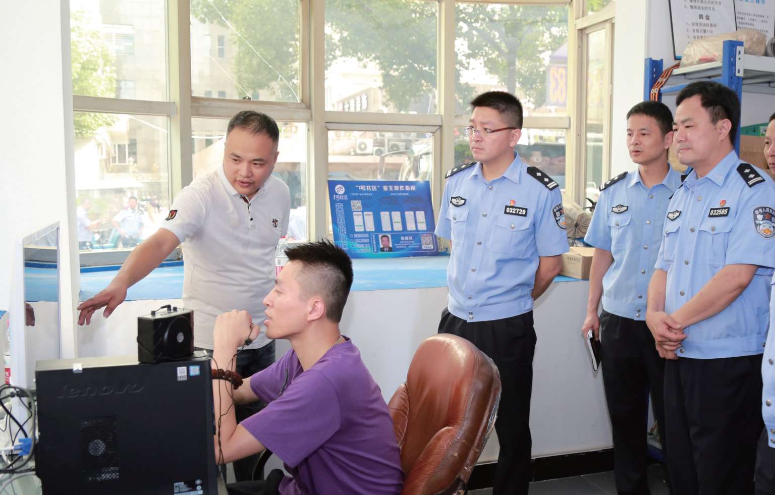 2018年7月17日,分局党委委员、副局长林孟闯(右三)赴黎明辖区调研指导智慧安防小区建设工作