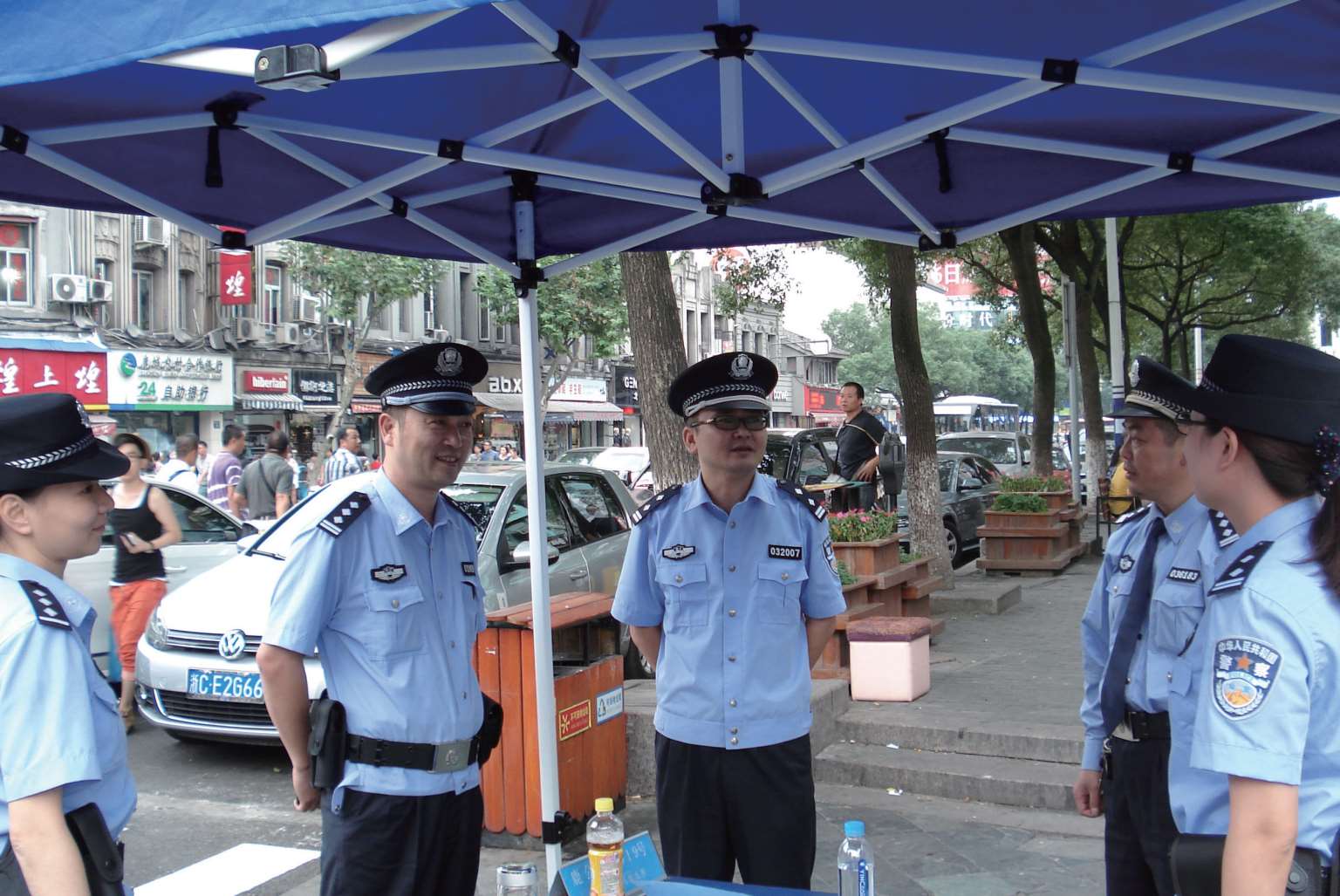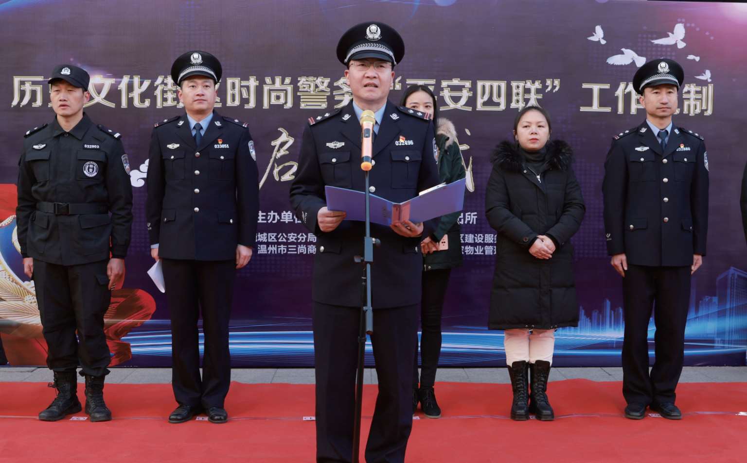 2021年1月10日,分局党委委员、副局长李忠洁(中)主持历史文化街区时尚警务“平安四联”工作机制启动仪式