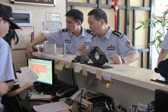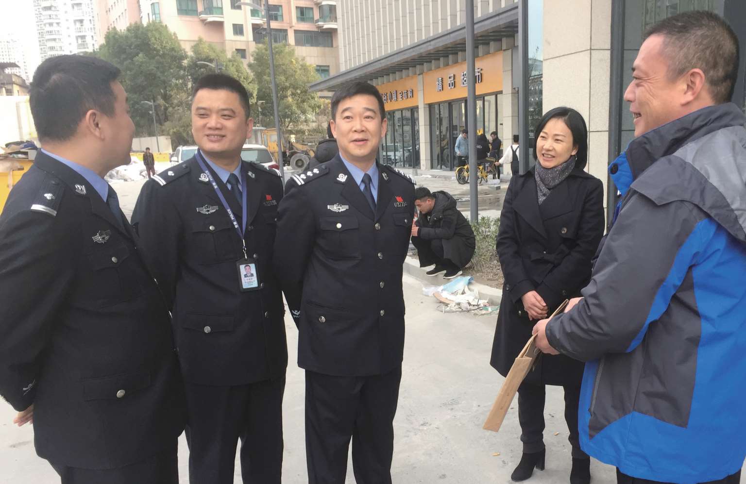 2017年8月22日,分局党委委员、副局长徐怡骅(右)到水心辖区督导检查工作