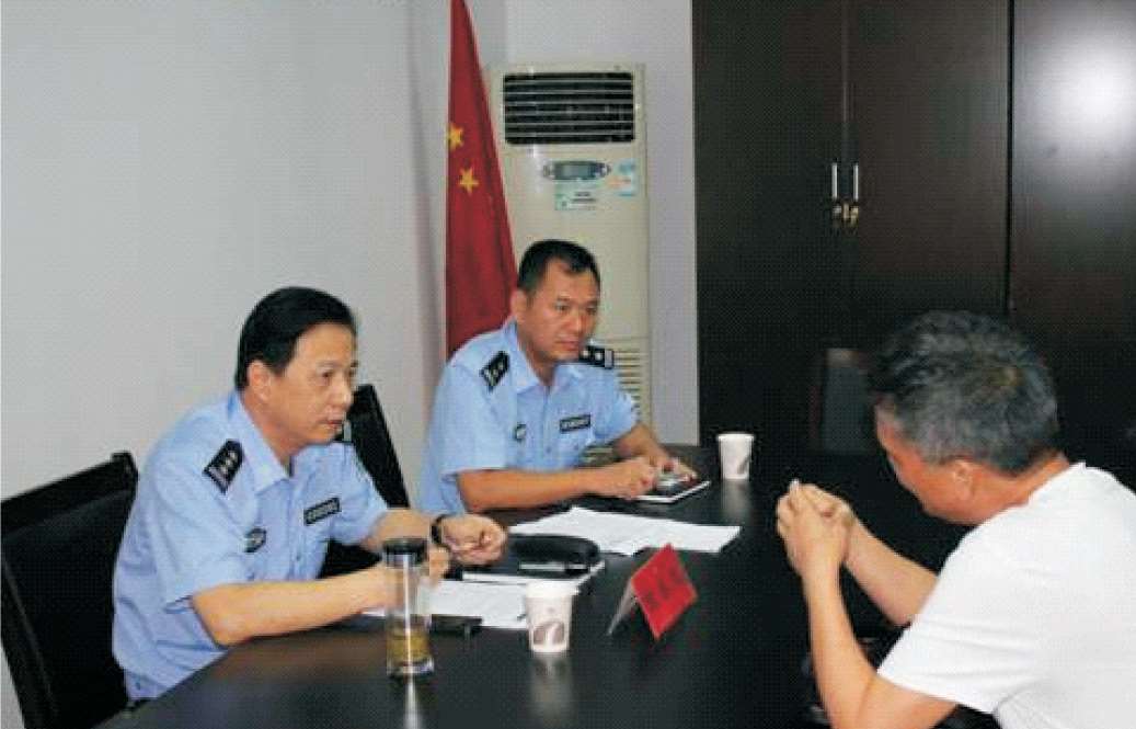 2009年7月15日,分局党委副书记、常务副局长潘为宁(左二)在分局信访接待室接待来访群众