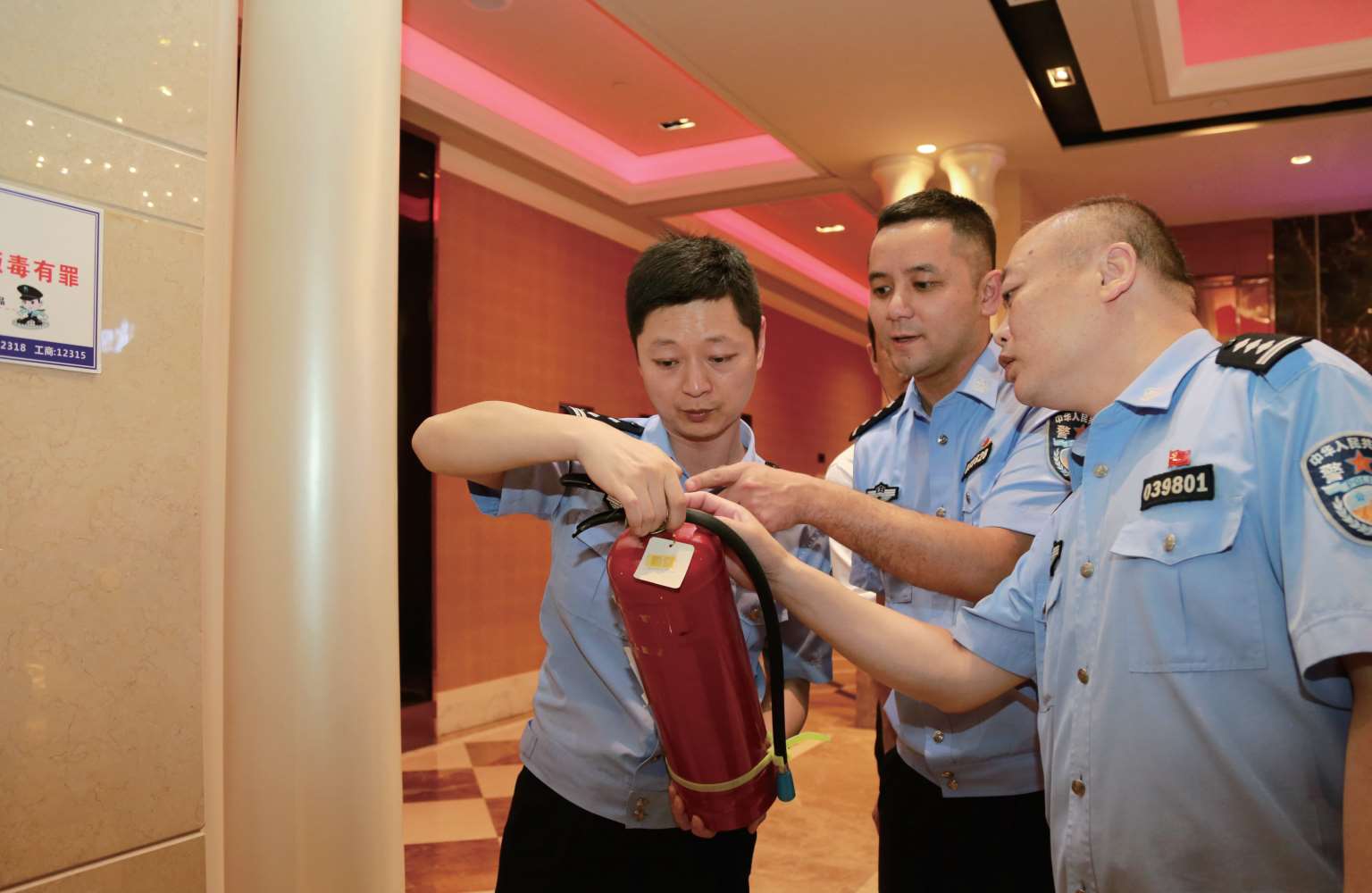 2018年5月17日,分局党委委员、副局长程式(左一)与分局党委委员、副局长陈文武(中)开展消防安全督导检查