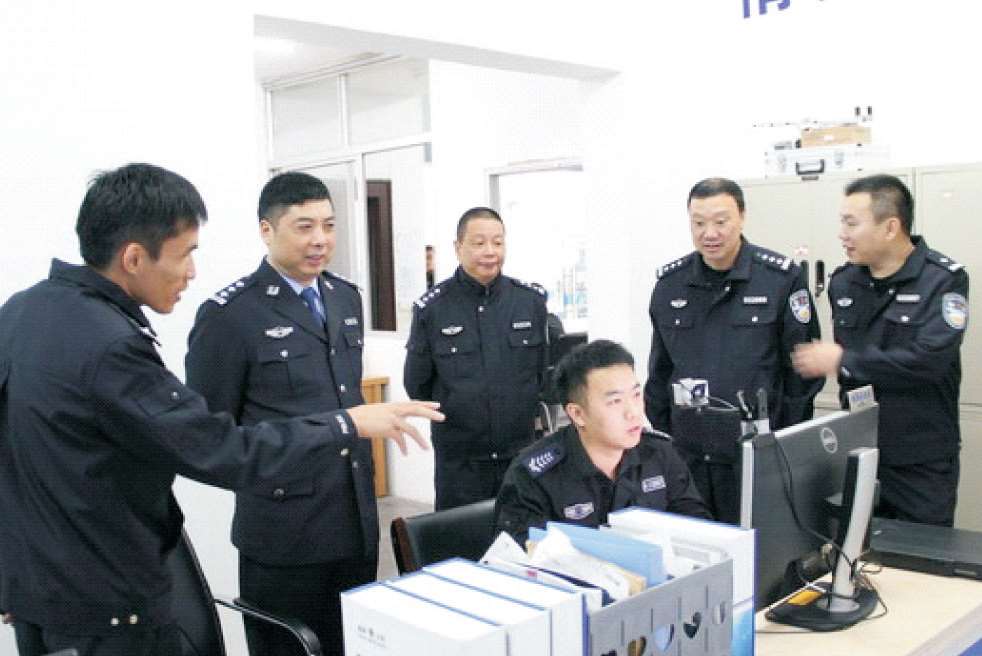 2018年1月15日,分局党委委员、纪委书记林朝晖(左三)到水心派出所督导检查工作