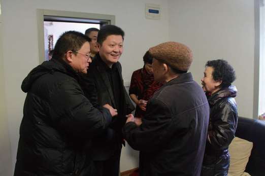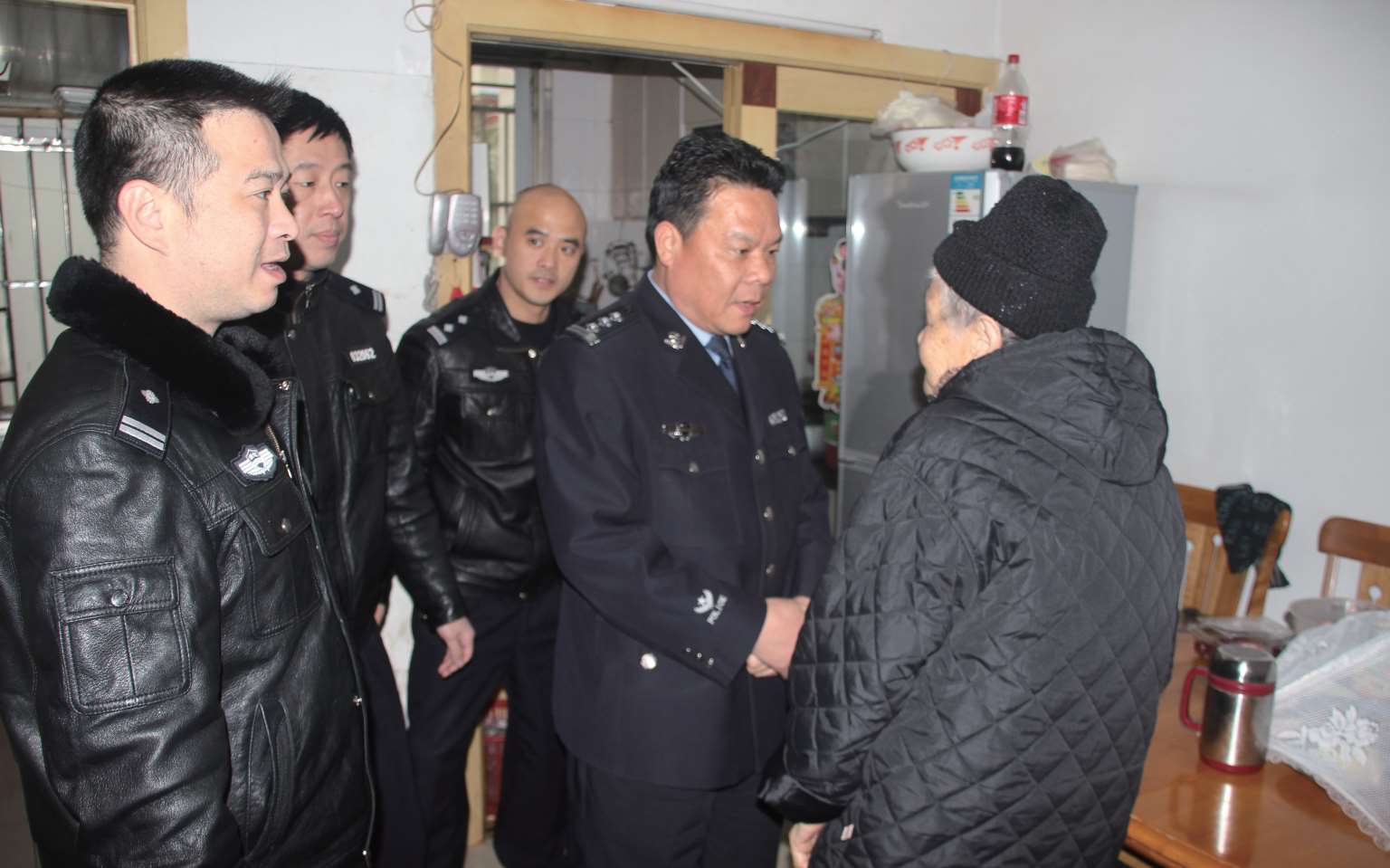 2013年2月1日,市公安局副局长、区委常委、分局局长王造(左二)走访慰问老党员