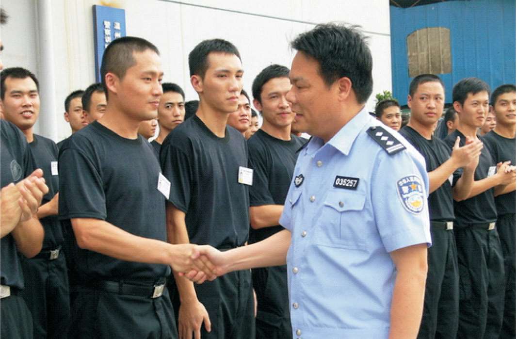 2010年8月11日,分局党委副书记、政委刘国珍(前排右一)看望慰问新警学员