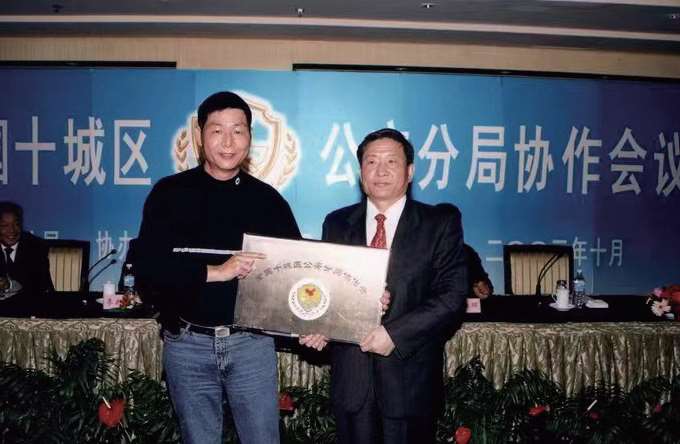2003年10月13日至17日,分局党委副书记、常务副局长黄松林(左)赴天津市参加第十六届全国十城区公安分局协作会议