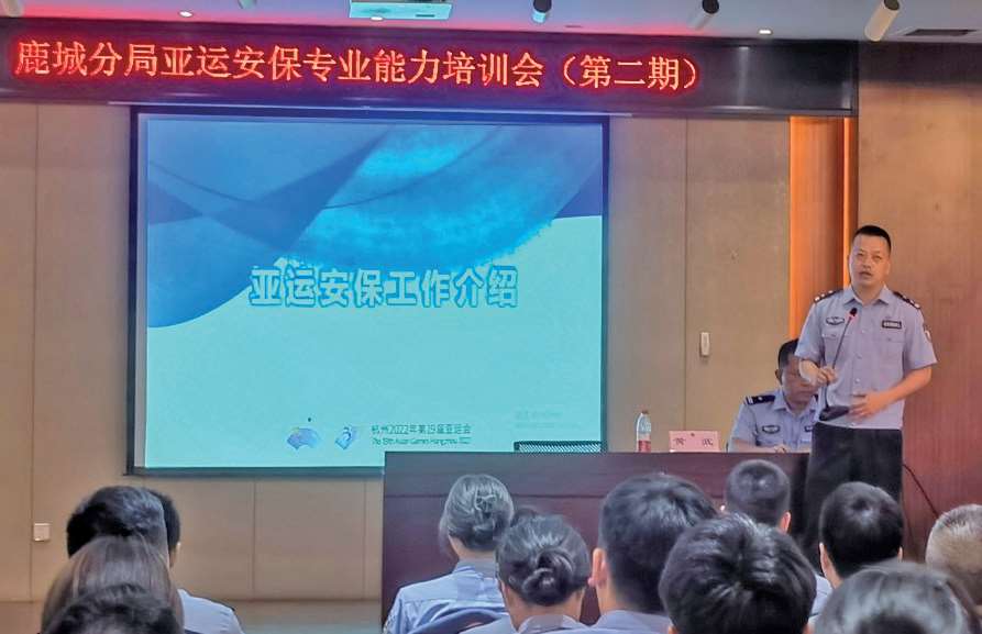 2023年6月16日,分局党委委员、治安大队大队长王明(右)对分局民警进行亚运安保专业能力培训