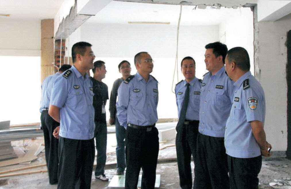 2013年1月21日,分局党委委员黄华(左)调研指导警灯工程建设情况