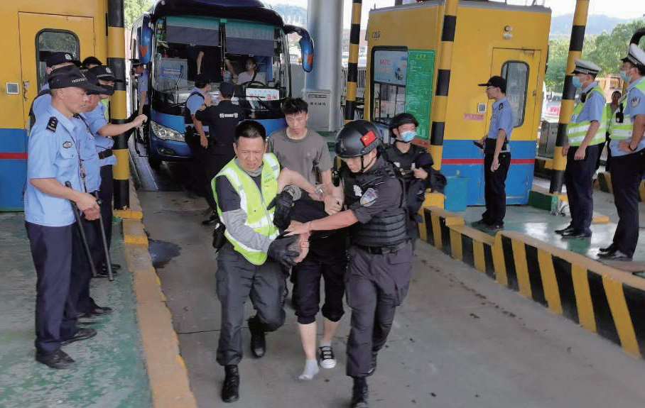 2020年7月29日,分局民警在温州西高速出口抓获两名持刀抢劫嫌疑人