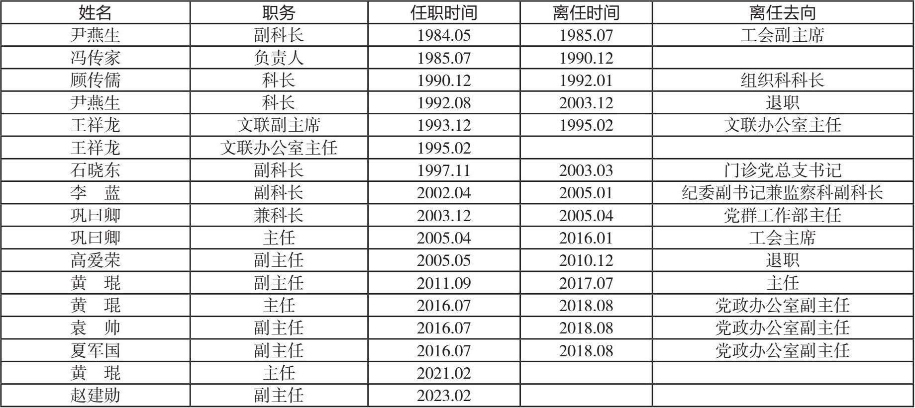 历任负责人
