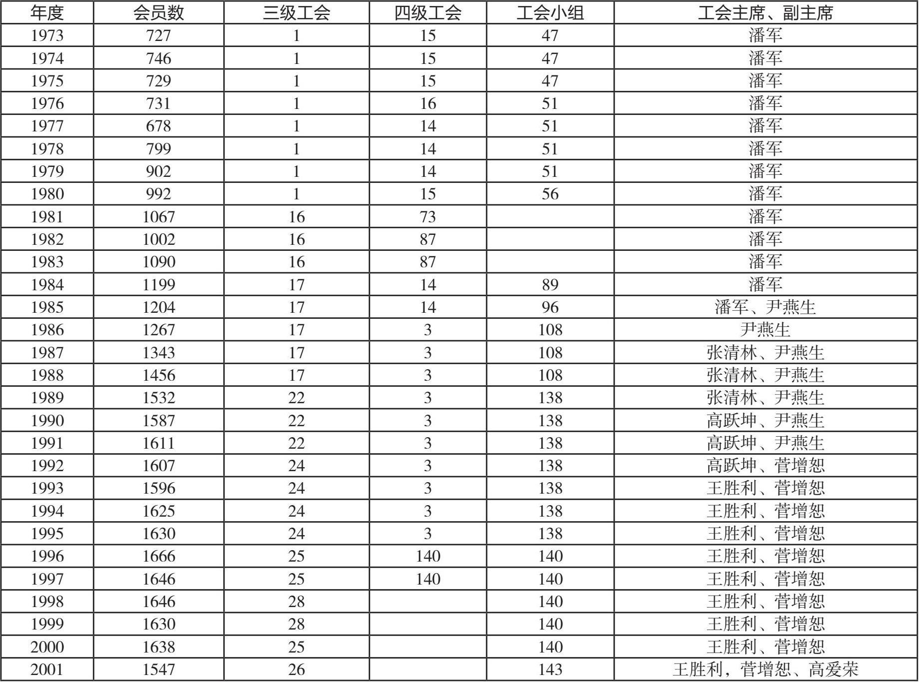 1973 年 4 月,根据省和油田工会指示,对工会组织进行整顿建设,每个会员都要经过工会小组讨论后登记,有 727 名会员重新登记,重新健全工会组织。