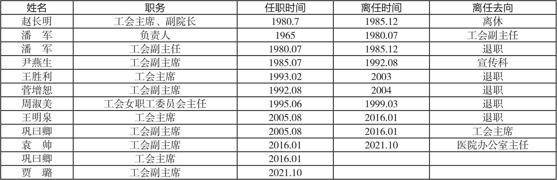 医院工会历任主席、副主席