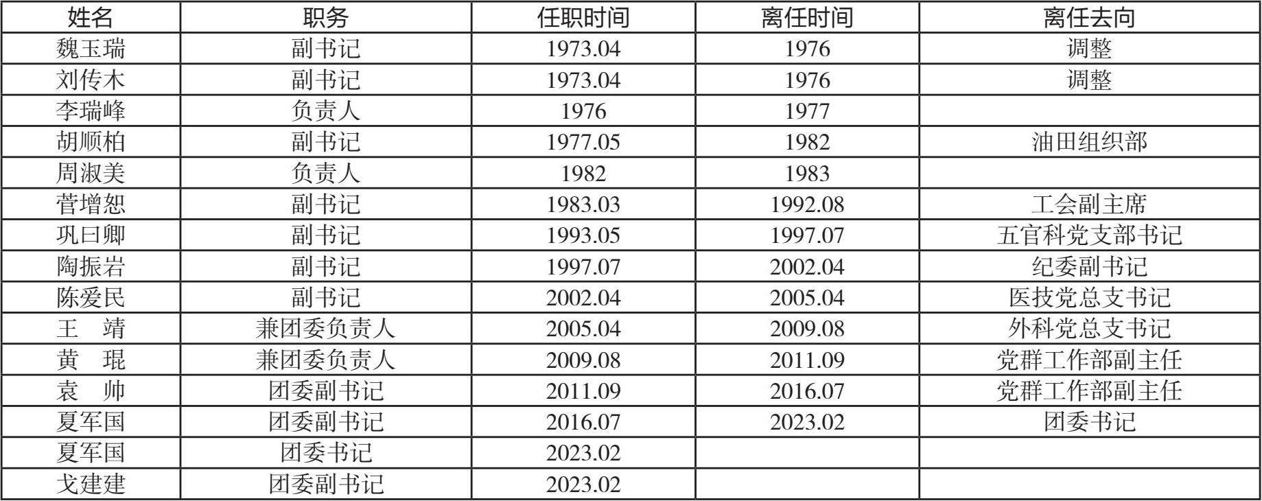 团委历任负责人
