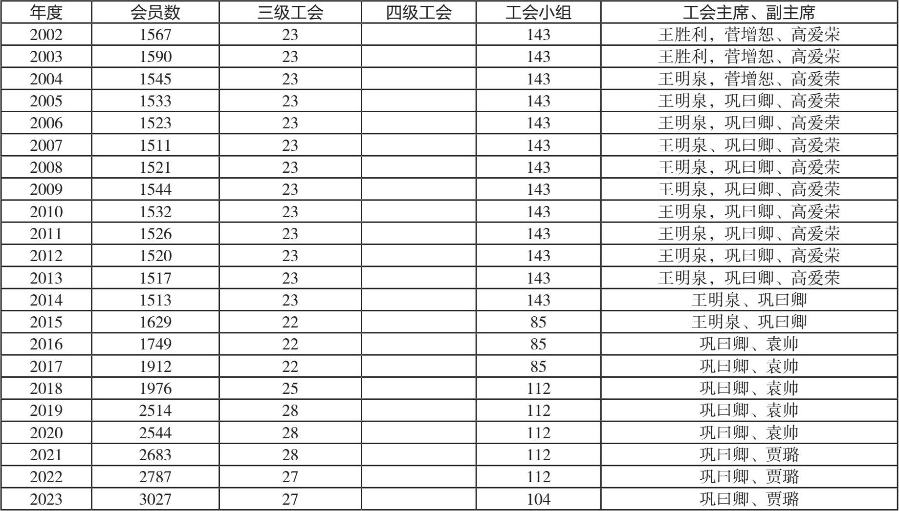 2016 年 2 月,召开工会第四届委员会全体会议,选举 15 人为第四届工会委员会委员。会议以无记名投票等额选举的方式,全票通过巩曰卿为工会主席,袁帅为工会副主席。