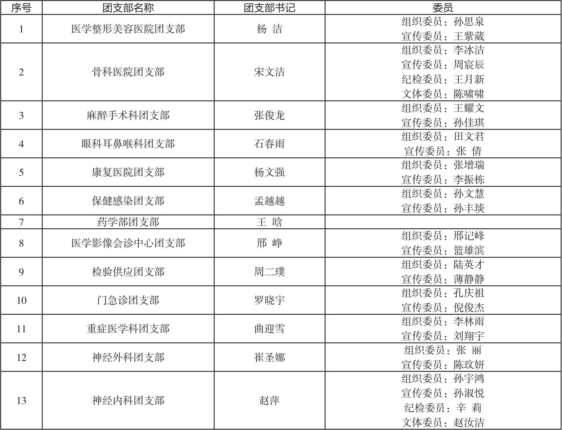 历届团代会 1973 年 4 月,召开共青团职工医院第一届团代会,选举魏玉瑞、刘传木为团委副书记,委员为胡宝华、朱秀梅、燕书能、刘新玲、刘庆江。