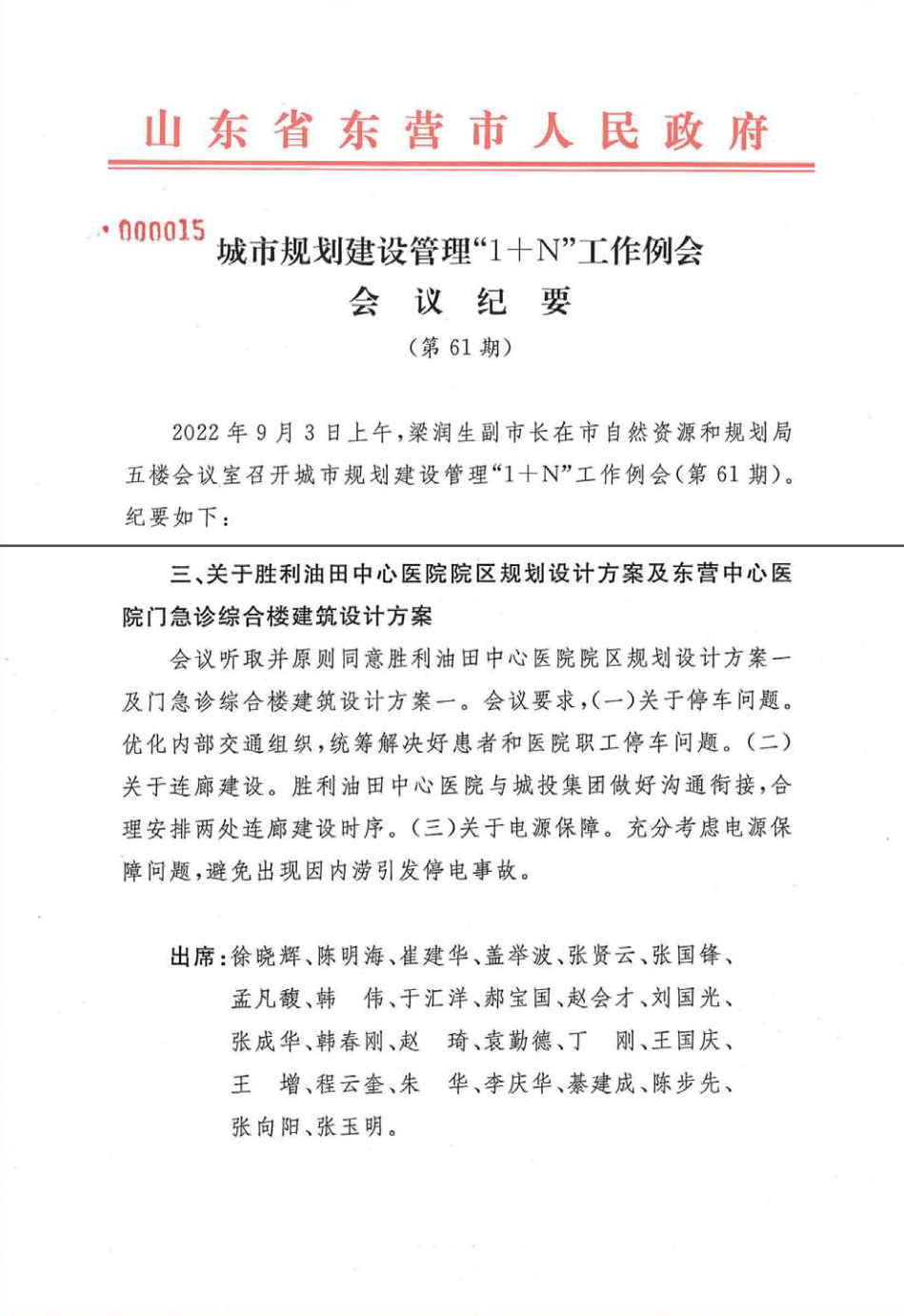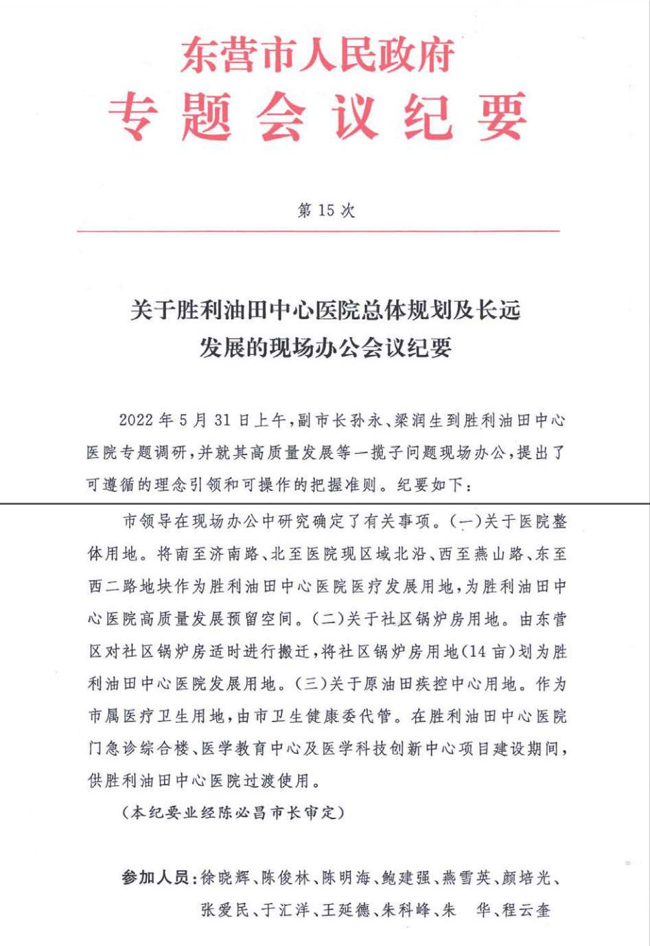 市政府关于胜利油田中心医院总体规划及长远发展的现场办公会议纪要