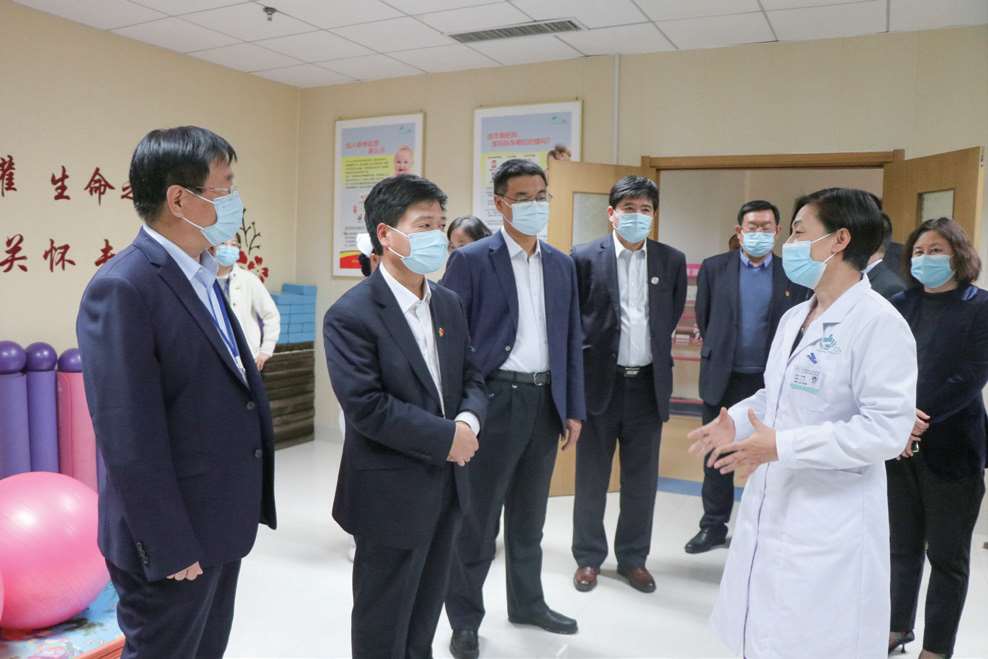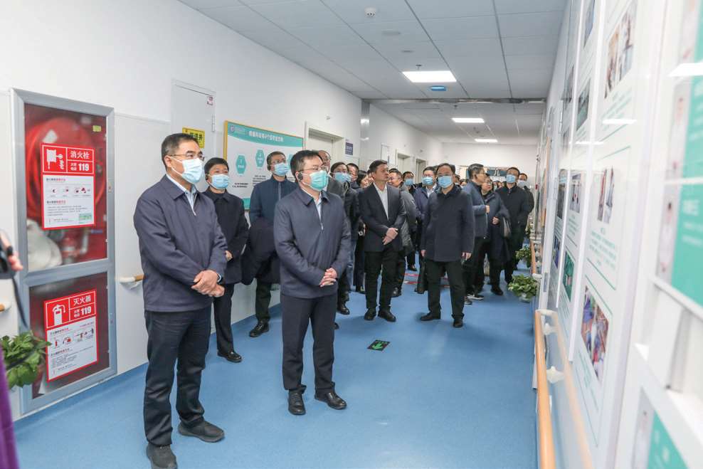 2022 年 3 月,市委常委、副市长何宪卓(前排中),副市长、东营区委书记苟宏水(前排右一)来院现场调研