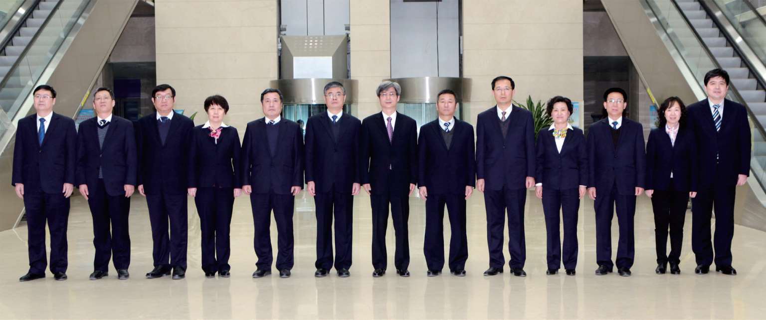党委书记颜培光(中)党委副书记、工会主席巩曰卿(右六)党委委员、副院长朱华(左六)党委委员、纪委书记代荣玉(右五)党委委员、总会计师许美村(左五)党委委员、副院长陈玉东(右四)党委委员、副院长王明鑫(左四)副院长袁庆忠(右三)副院长成波(左三)副院长王敏河(右二)副院长王佐荣(左二)副院长韩文学(右一)副院长张旗(左一)