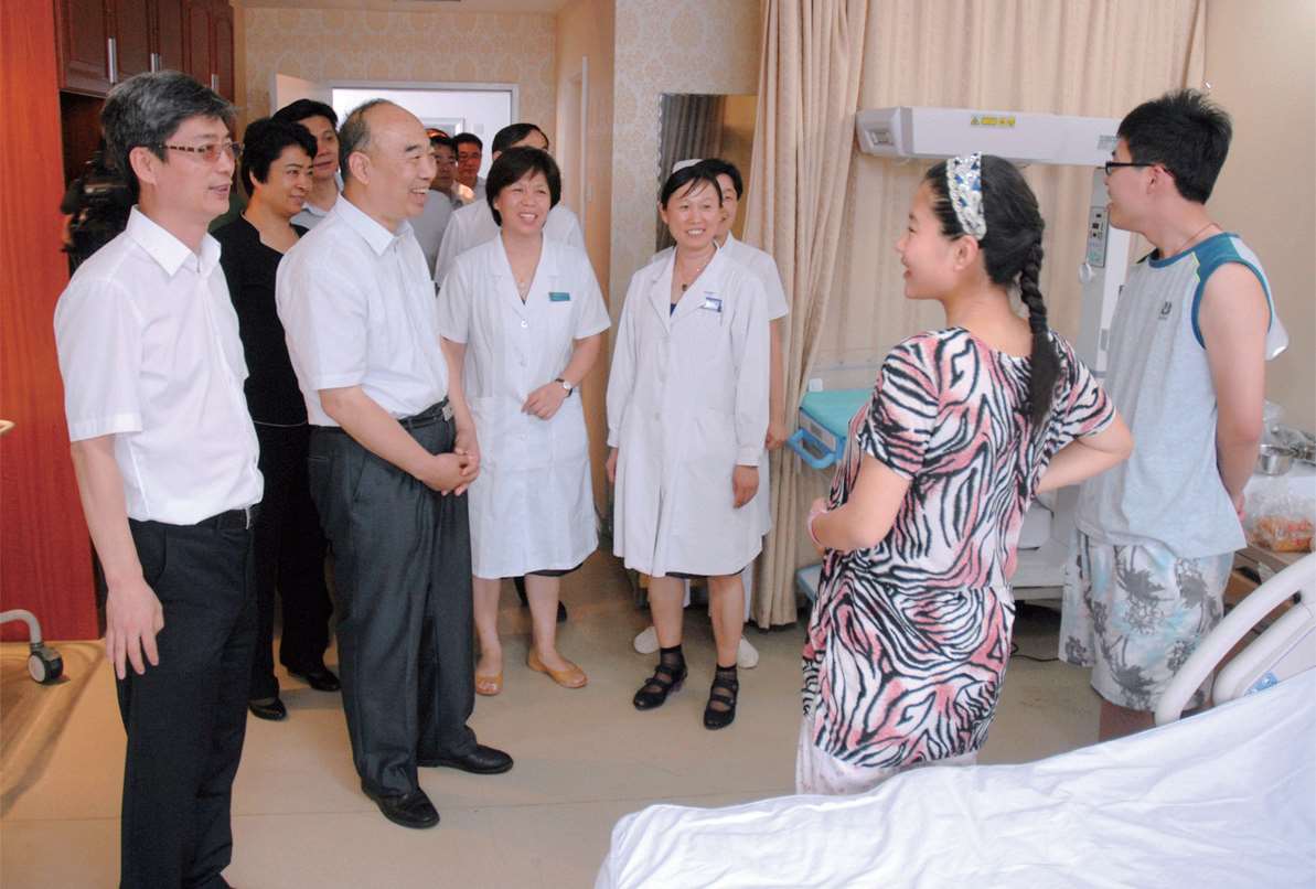 2004 年 4 月,山东省卫生厅原副厅长董先雨(中)到院视察