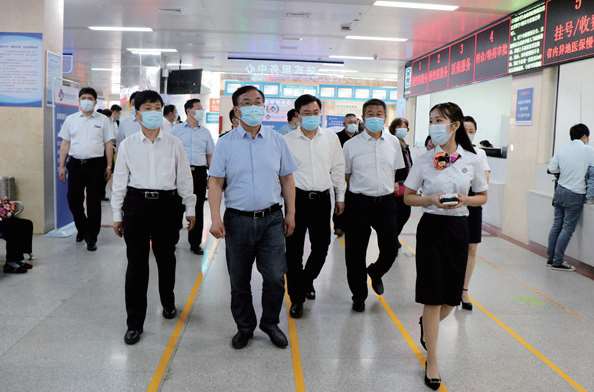 2020 年 3 月,东营市委书记李宽端(前排右二)来院调研