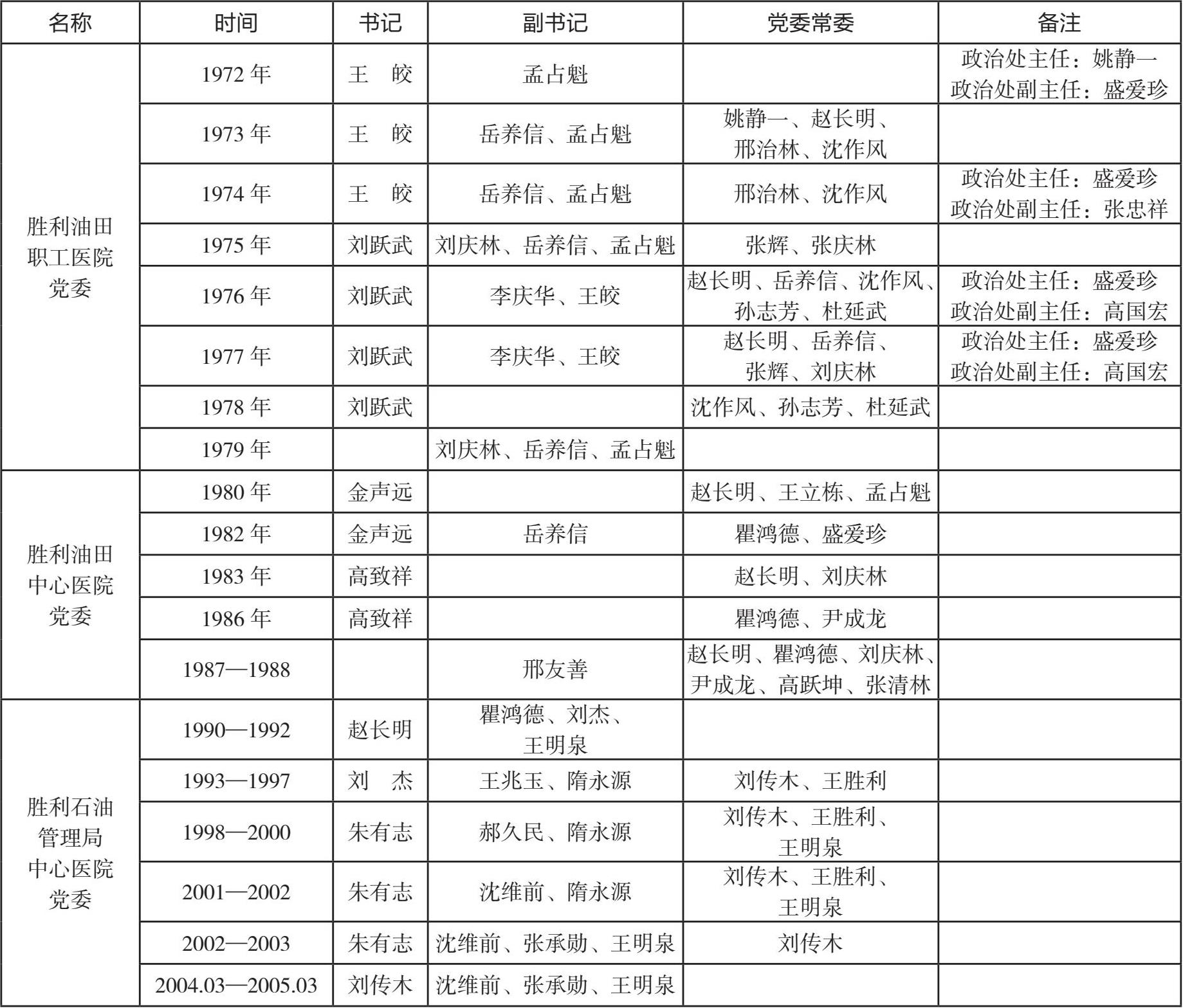 1976 年,胜利油田党委决定成立卫生处临时党委,由 11 人组成,刘跃武任书记,李庆华、王皎任副书记。