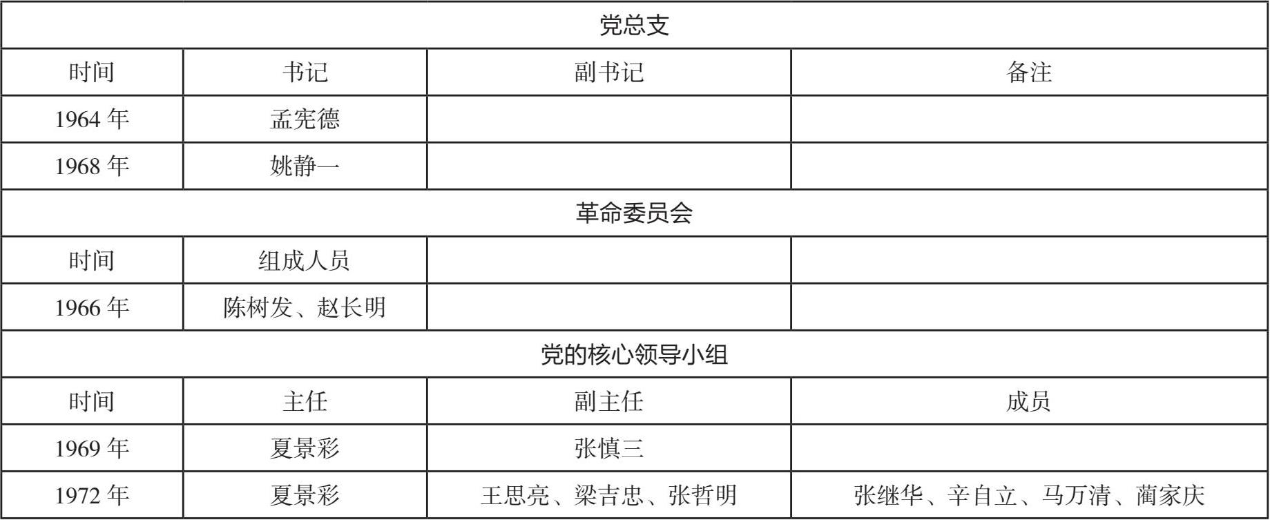 党组织历任组成人员情况(1964—1972)