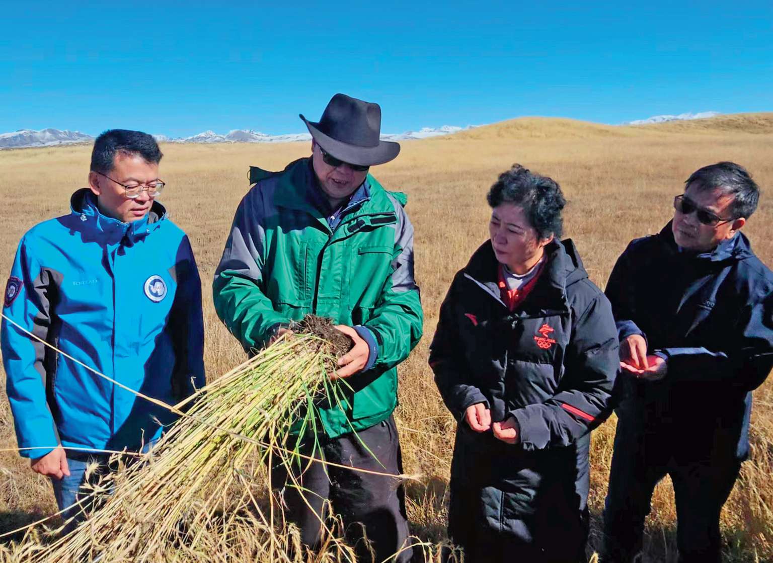 2023年10月19日,省政协副主席李晓南率人资环委委员赴木里―江仓矿区调研种草复绿工作,看望祁连山国家公园弧山管护站管护员
