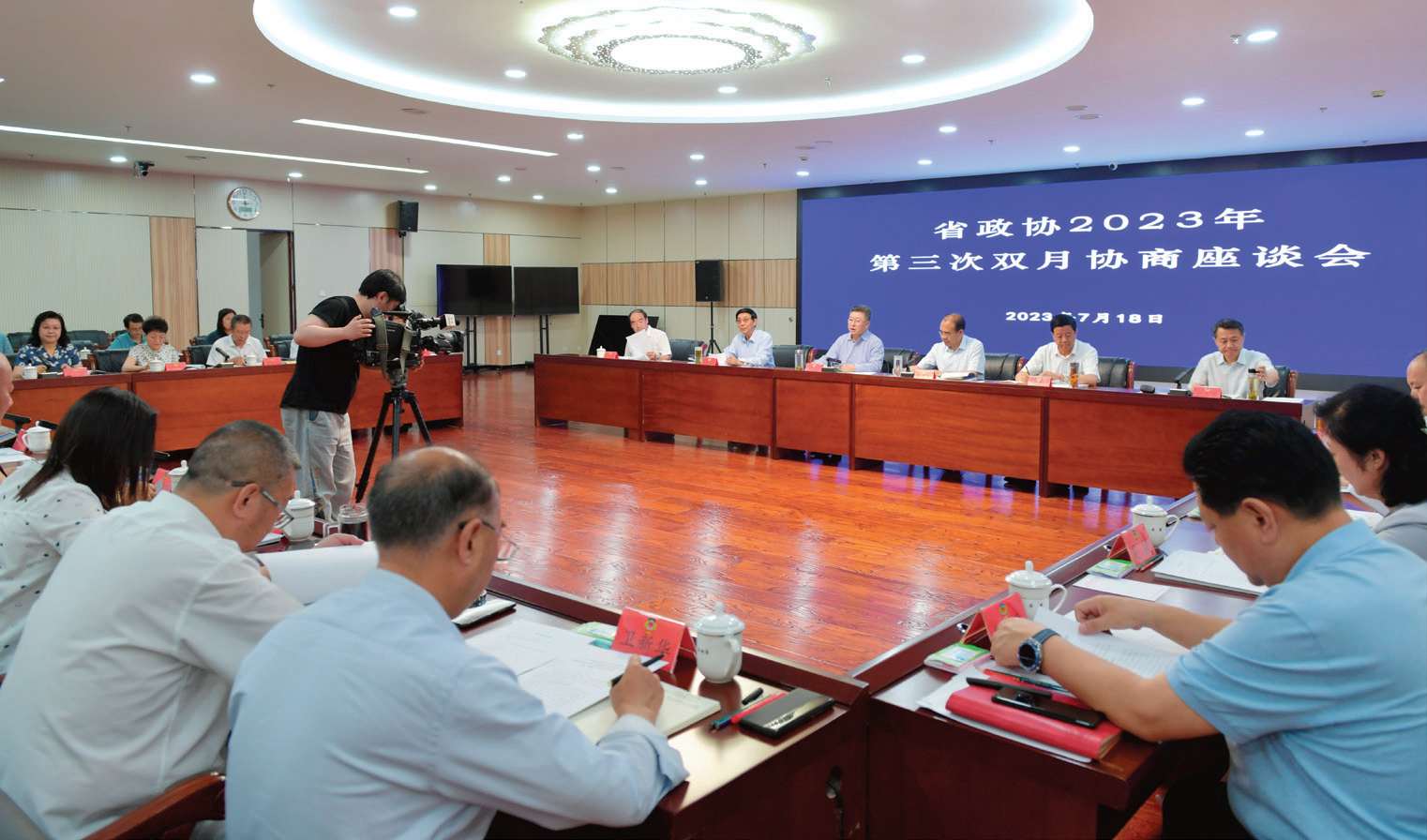 2023年7月18日,省政协召开第三次双月协商座谈会,围绕“实施各民族交往交流交融工程,建设有利于铸牢中华民族共同体意识的民族关系”协商议政