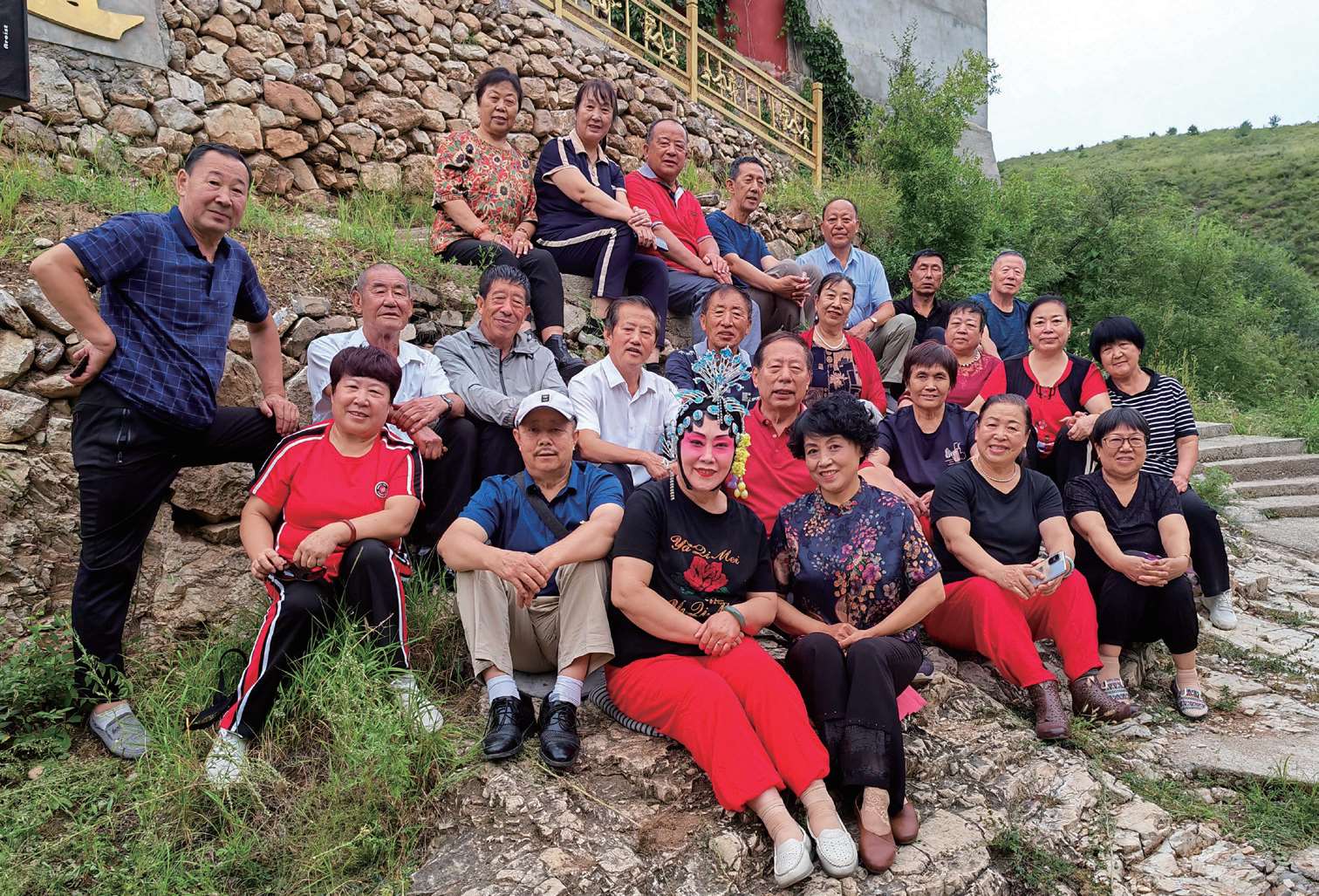 涿鹿县老年大学晋剧社在溪源村龙王庙演出留影。前排左起:王秀琴、霍欣明、刘爱平、霍汉清、乔润林、庞桂兰、张玉娥、陈喜云;中排左起:张凤皋、侯弟树、李富林、侯占国、董振川、刘永芳、韩喜兰、张桂萍、李富莲;后排左起:吉桂春、郑嫦娥、董世明、崔振飞、李福高、李长银、唐振中。拍摄于2023年8月25日
