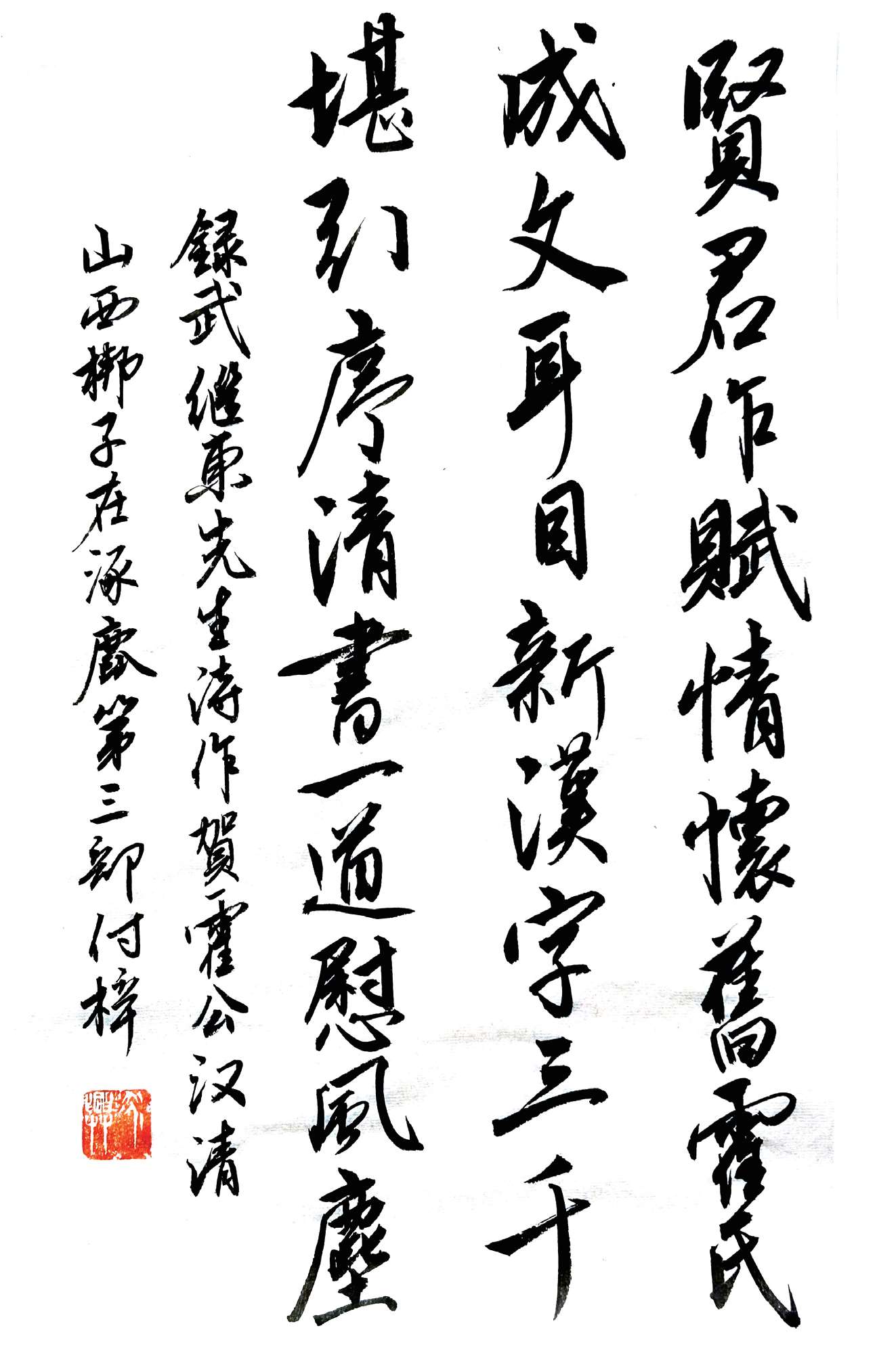 在席振德老师收徒仪式上留影,左起:谷晓云、翟雨厚、席振德、郝富、霍汉清。拍摄于2021年4月15日