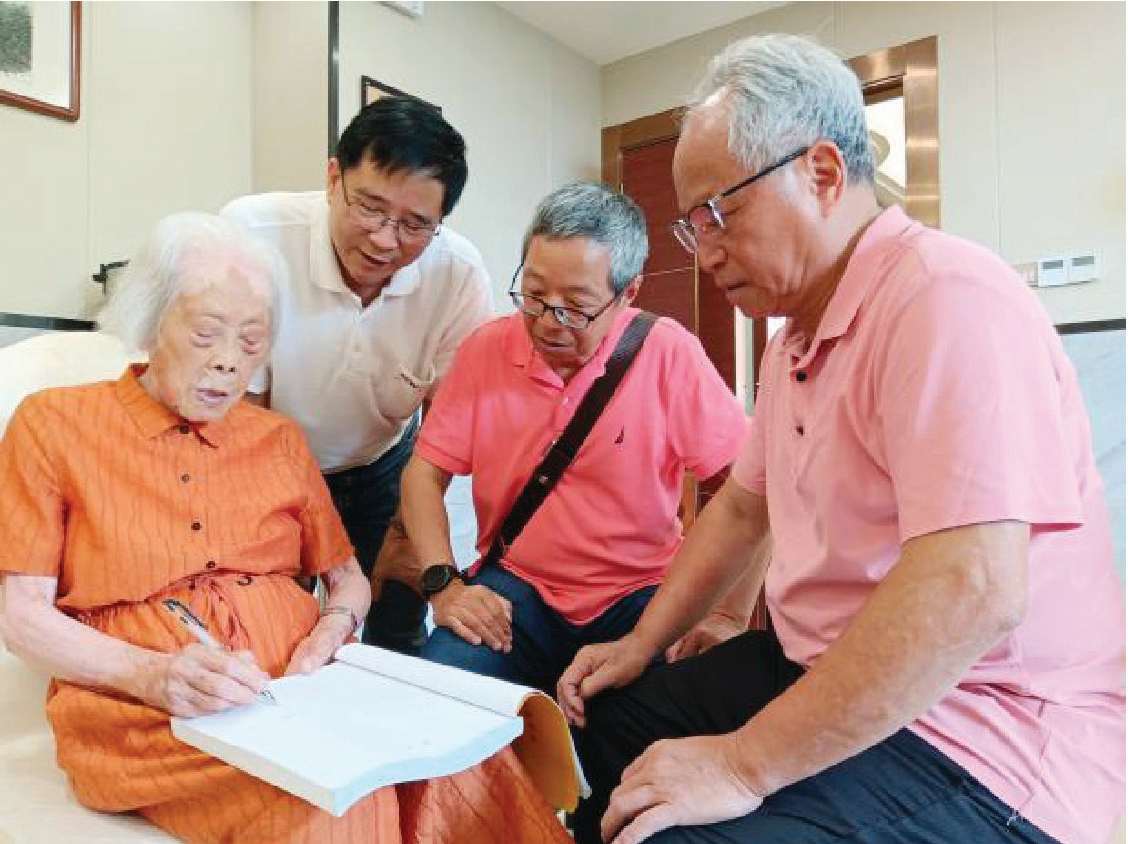 103岁抗日巾帼英雄梁文坚女士在广州为《蟠扶红色印记》作序签名