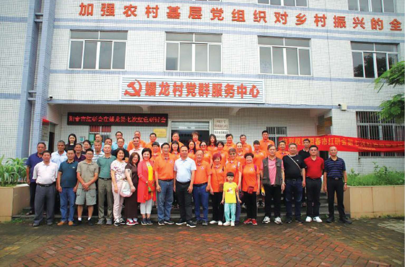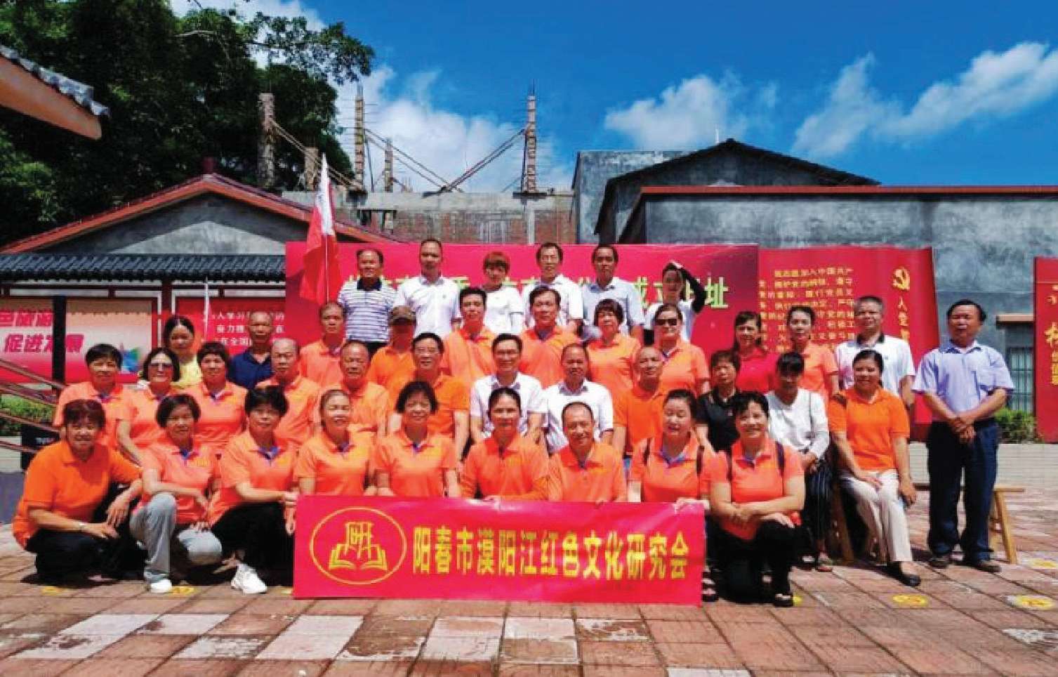 中共阳春市委宣传部、阳春市档案馆、春城街道蟠龙村民委员会干部与阳春市漠阳江红色文化研究会部分成员在中共广南分委、广南军分委旧址(重建)合影留念