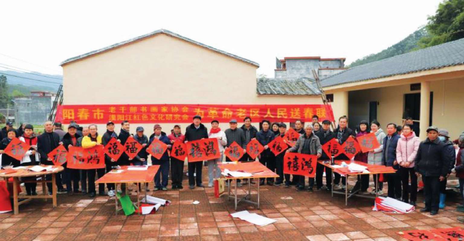 2024年春节前夕,阳春市漠阳江红色文化研究会与阳春诗社到阳春春城街道办蟠龙村中共广南分委、广南军分委旧址(重建)给老区人民送春联