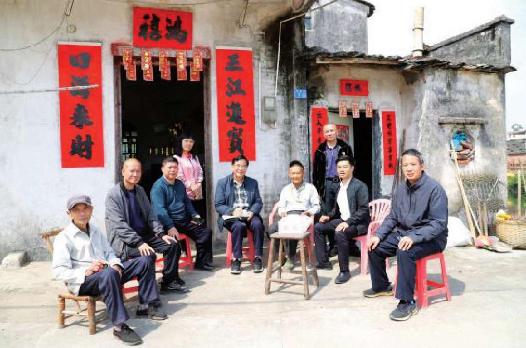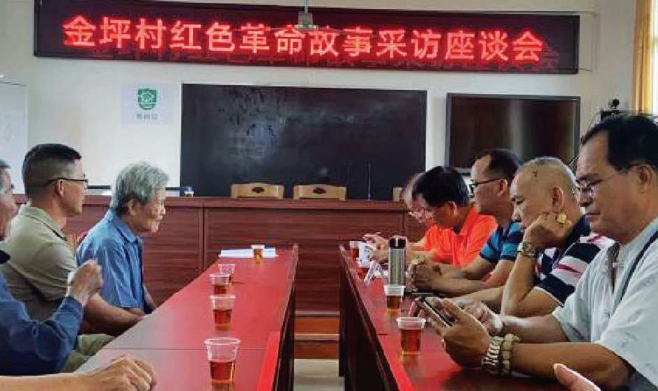 阳春市漠阳江红色文化研究会到金坪村民委员会采访了解当年情况的群众