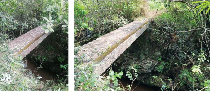 图为明代修建的石板桥(之前是木桥),距今已有600年历史,解放前曾是龙湖乡、蟠扶乡人民到阳春城的必经之路(1942年国民党修了公路,此桥就少有人经过了,但解放前每年汛期仍是进出城的重要道路),该桥位于头堡桥头村,桥长6米,宽不足1米