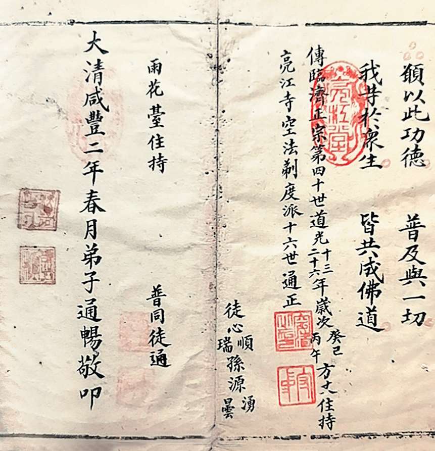 邑报恩寺藏有清咸丰二年(1852 年)抄本《施食焰口》一部。该经由雨花台住持通畅抄写,字体端庄方正,尽呈大德之诚。