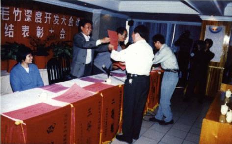 1998年,北山毛竹深度开发大会战总结表彰大会(吴智宏/摄)