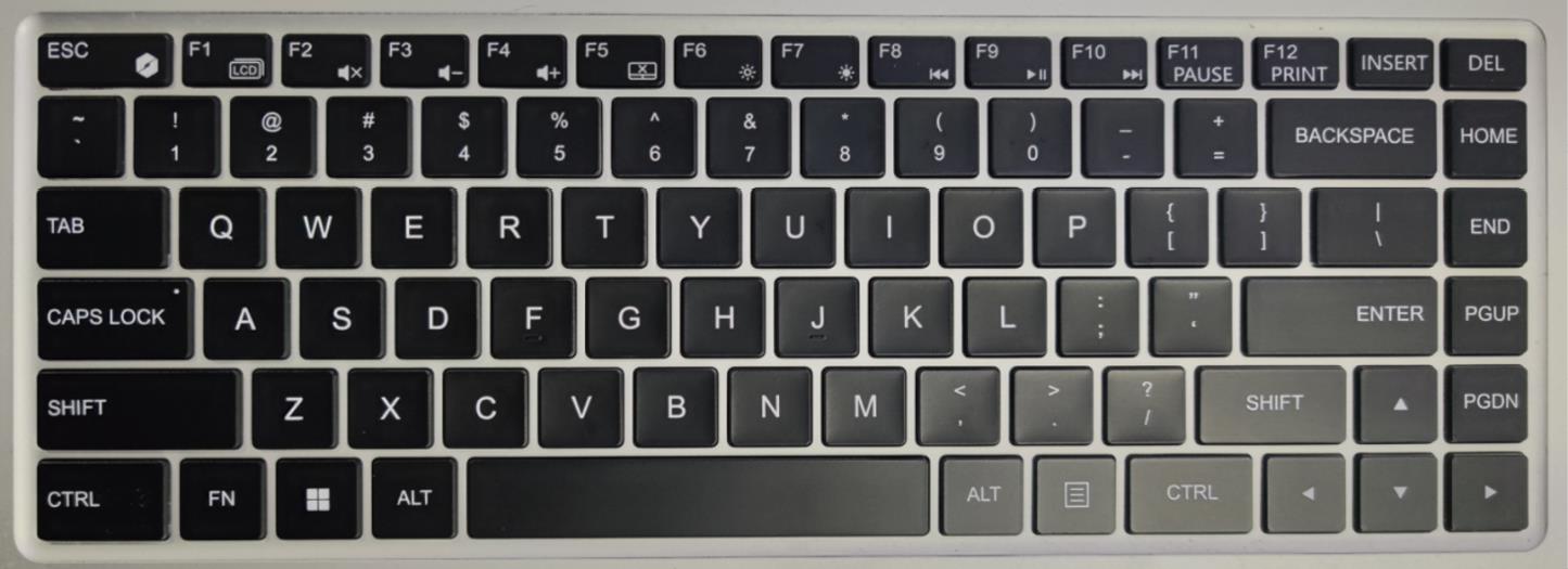 同学们,观察你的计算机,看看键盘上有哪些按键。下面我们认识一下键盘,常见的笔记本计算机键盘如图1.2所示。键盘上主要有以下几类按键。